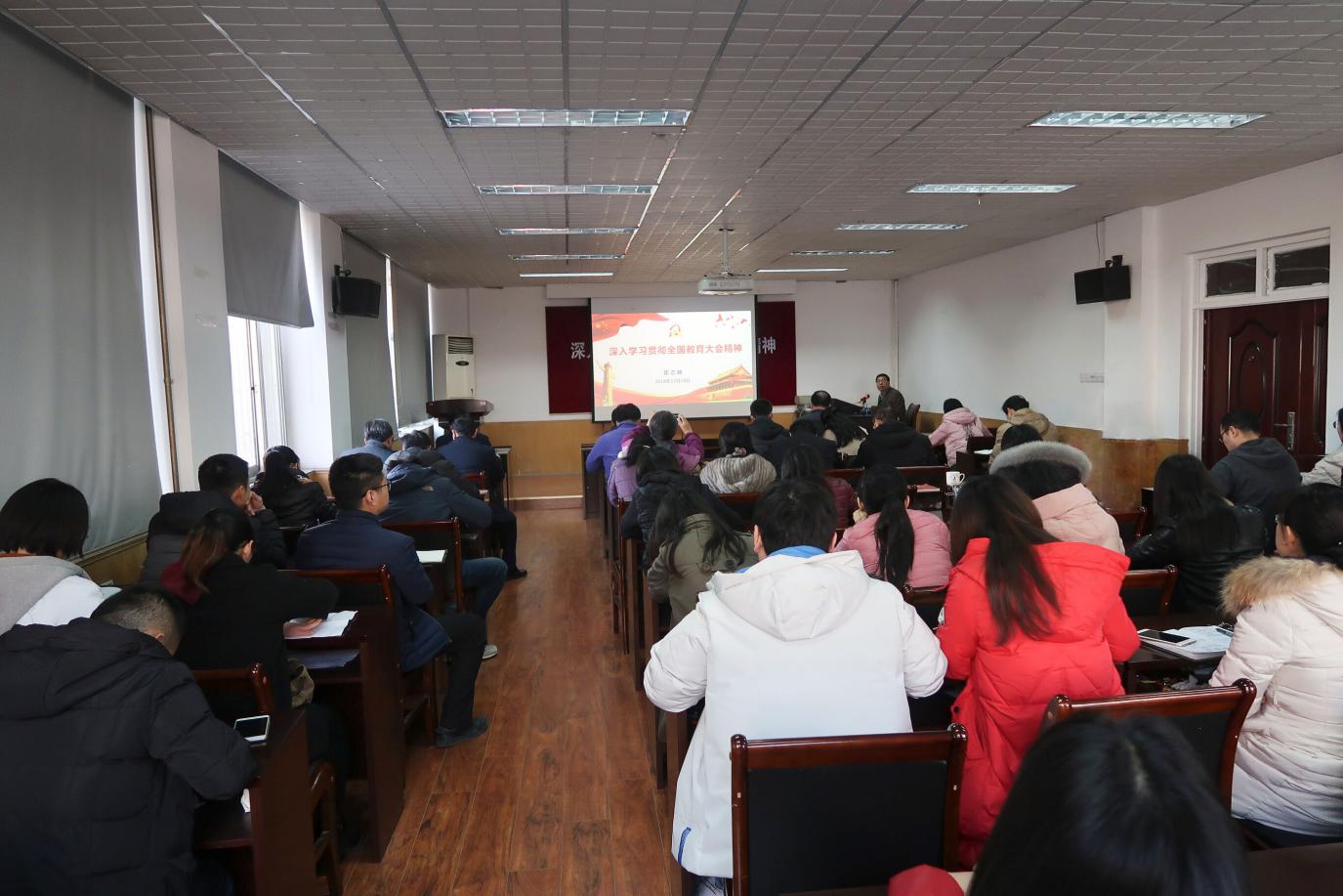 崔志峰围绕“充分认识全国教育大会重要意义、深入学习领会习近平总书记关于教育的重要论述、扎实推进加快教育现代化的重点任务、全力确保教育大会精神落实落地”四个方面,结合学校学院实际,讲解了全国教育大会精神。