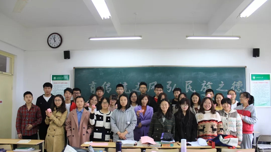 各个班级通过多样的形式深刻体味传统文化知识的韵味,食科九班的同学们一起在班会上折千纸鹤,感受传统文化的深厚底蕴,寄托自己对中华文化的崇敬与热爱。