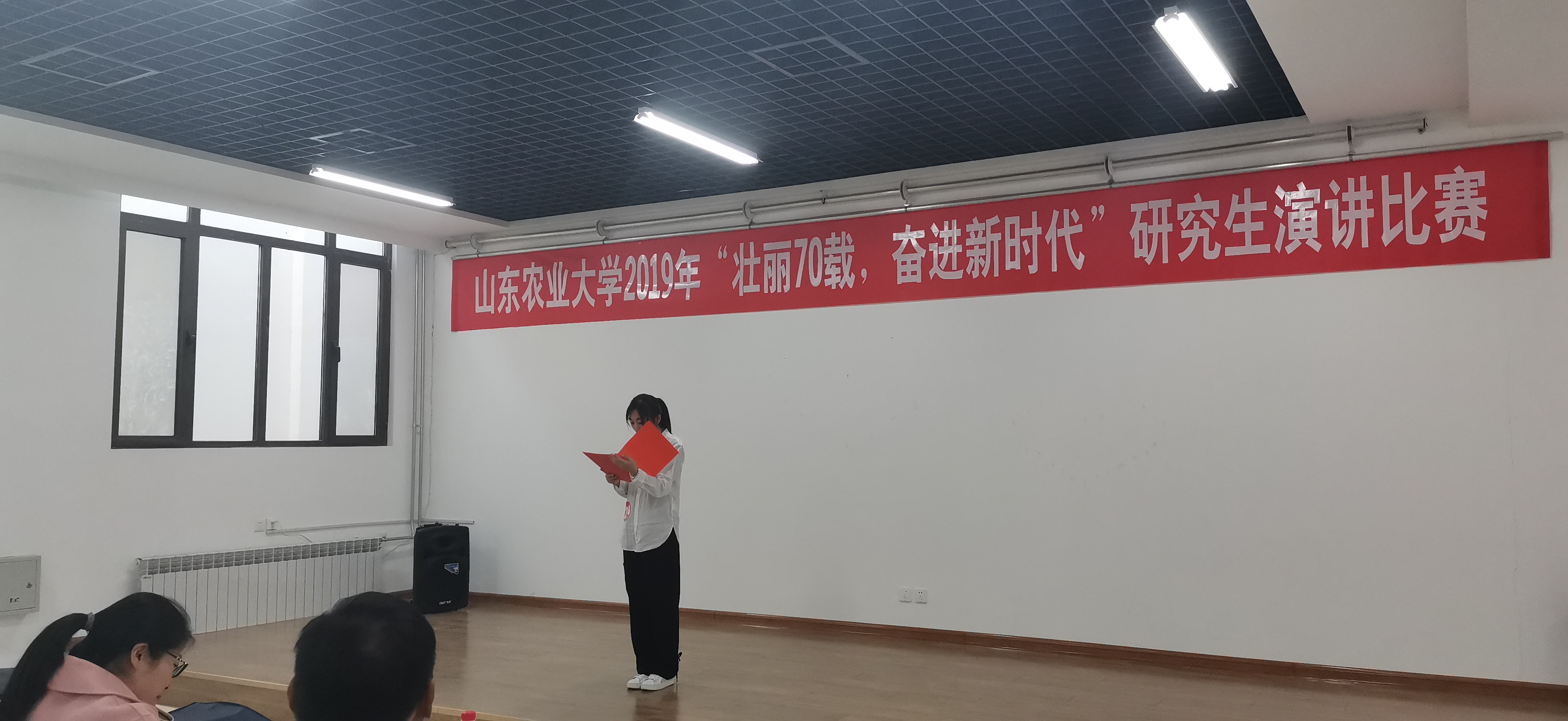 10月15日下午,由山东农业大学研究生处、研工委主办,食品科学与工程学院、公共管理学院承办的“壮丽70载,奋进新时代”演讲比赛初赛在校研究生会活动室成功举办。