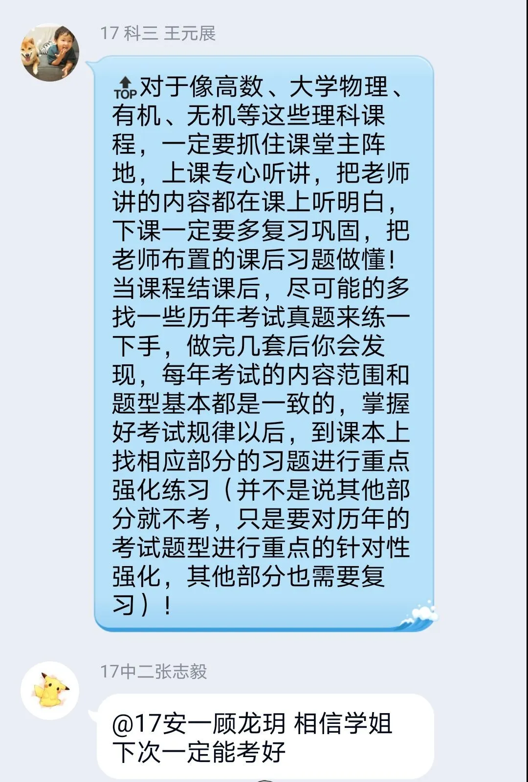 19科三王月娇: 学长学姐们的耐心解答让我学到了很多,对于陌生的有机化学不会再充满恐惧,无处下手,相信用了学长学姐们的方法我会事半功倍学好化学的。