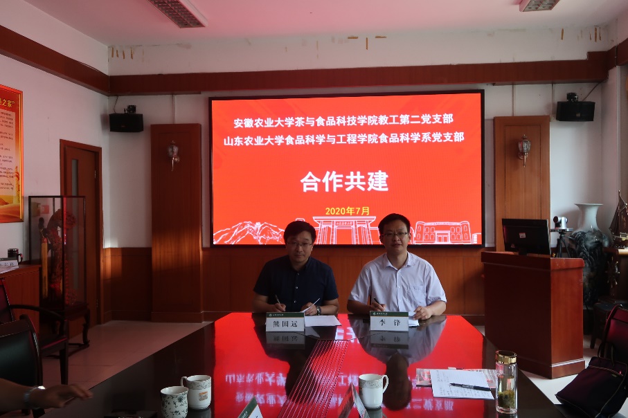 在商讨中,双方达成了探索高校基层党组织合作共建的新模式,旨在形成互带互动、优势互补、共同发展的高校基层党建工作新格局。双方党委举行了两院党委及我校食科系党支部与安农大食品教工第二党支部的结对共建签约仪式。双方表示今后将在基层党务工作交流与合作、党建与教育教学、科学研究及社会服务融合创新等方面密切合作。签约仪式后,与会人员参观了食科学院中心实验室等公共教学及科研平台。