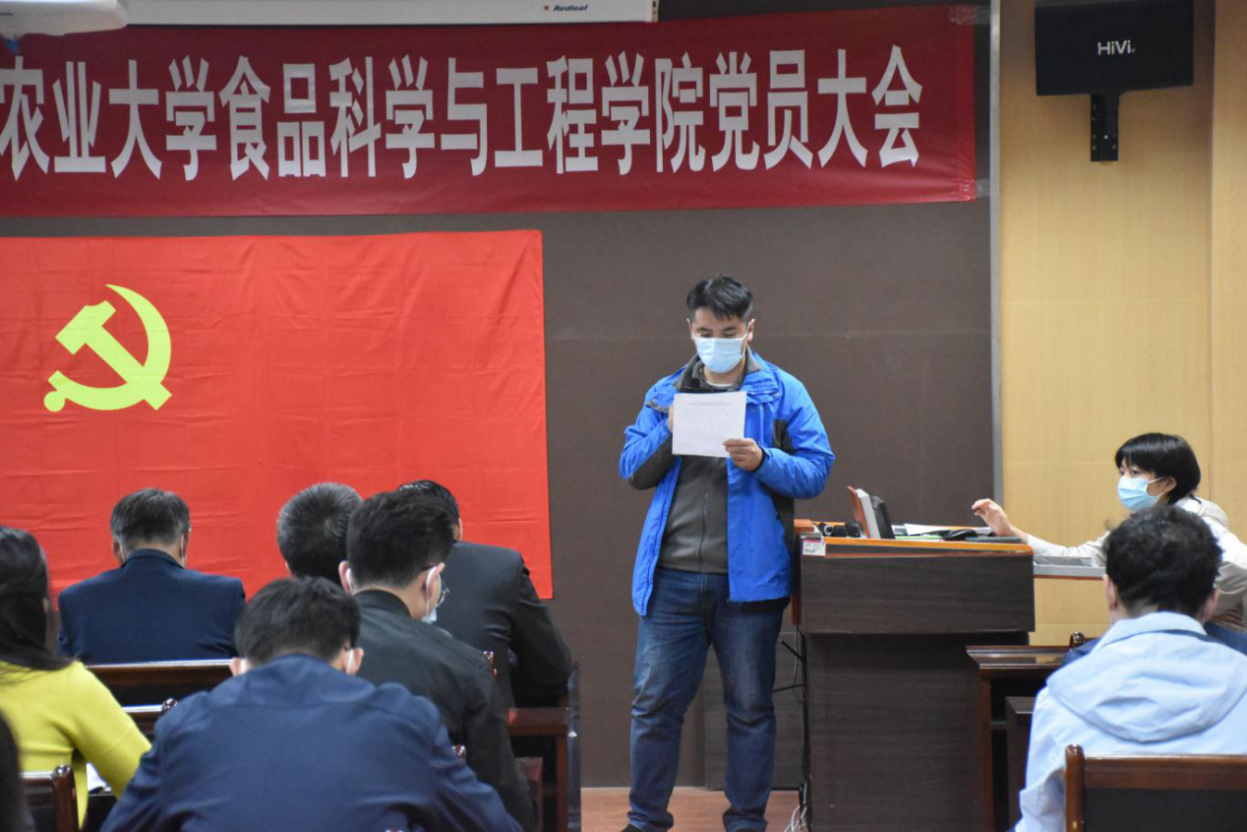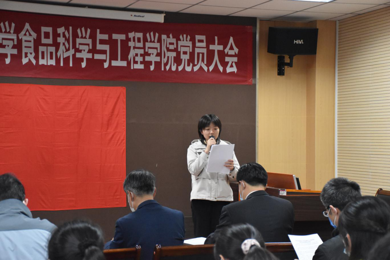 大会审议通过了《中共山东农业大学食品科学与工程学院党员大会选举办法》(草案)和监票人、计票人名单。按照选举办法的规定,以无记名投票的方式差额选举出新一届中国共产党山东农业大学食品科学与工程学院委员会委员。