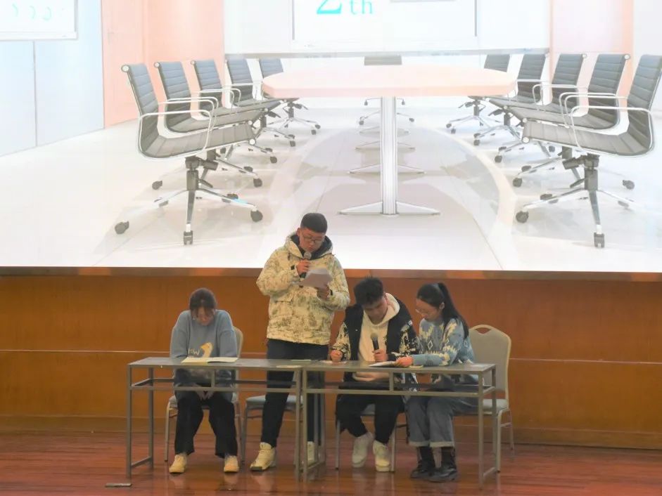 各团队全部展示结束后,毕宇晓老师对同学们的表现给予肯定和鼓励,他说,每位同学应了解班级的作用与概念,在丰富多彩的大学生活中合理安排学业与活动,同学们也应该对班团有正确的认识,有问题及时与班委协商,以共同的力量建设一个团结的班级。