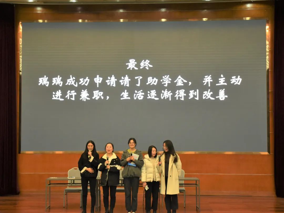本次大赛初赛收到各学院共30份作品,经过专家老师对各团队提交的纸质版案例分析报告进行评议后,最终来自八个学院的十只队伍进入决赛。决赛共分为PPT答辩和情景剧表演两种形式进行。PPT展示中,主讲同学妙语连珠,结合精美的PPT描述了当下同学们学习过程中容易产生的问题,并提供了相应的解决方案。情景剧表演的班级以精彩的表演重现了同学们身边所遇到的困境,深入诠释和展现了部分大学生遇事的反应与心态并给予相对的解决措施,引起广大同学共鸣,现场掌声不断。