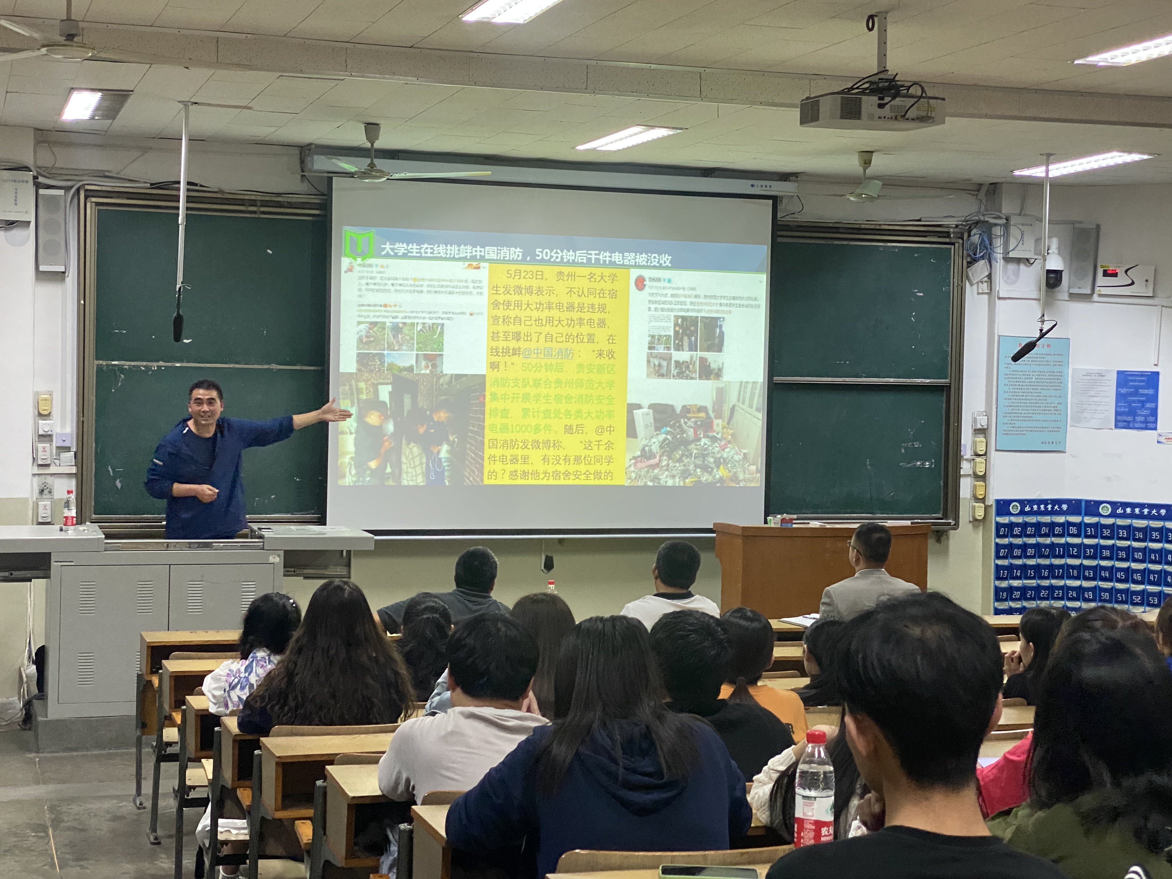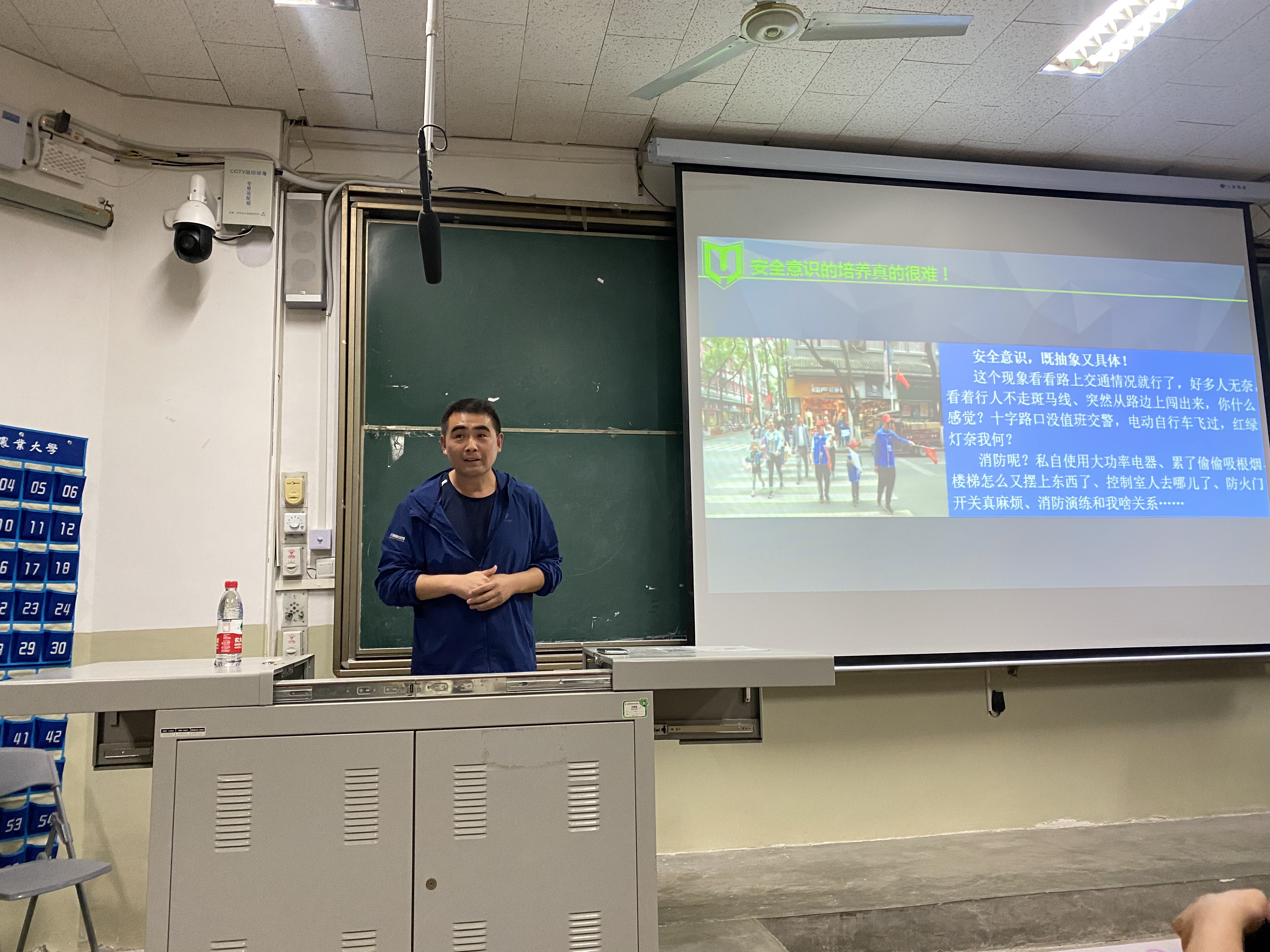 杨校长以“关注消防,生命至上”为主题,通过基础理论和真实案例深入浅出地讲述了消防安全的重要性,重点就宿舍和实验室常见火灾隐患、火灾防范措施、初期火灾处置和灭火器材使用进行了阐述。同时围绕着消防安全“一懂三会”,为大家讲解消防安全知识、疏散逃生技能等消防常识。
