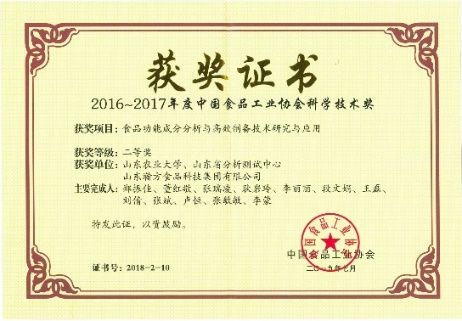 6  | 高附加值新型大蒜与金银花、牡丹花功能食品开发与综合利用  | 中国商业联合会科学技术奖二等奖  | 2017  |