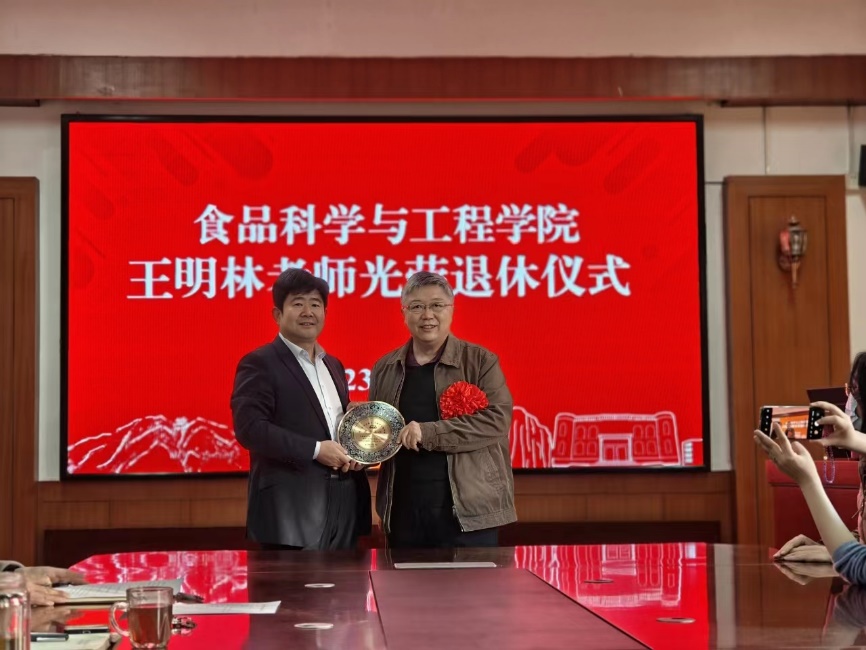 莫道桑榆晚,为霞尚满天。此次教师光荣退休仪式不仅肯定了王明林老师卓著的学术成就、对科研事业的执着追求、对食科学院的学科建设和教育事业做出的巨大贡献,更激励青年教师以王老师为标杆和楷模,勤奋扎实科研,躬耕教坛育人,增强为学院事业奋斗的信心和决心。今后,学院将秉持“思想上关心、生活上照顾、精神上关怀”的宗旨,用心用情、尽心尽力地做好退休教师的服务工作。