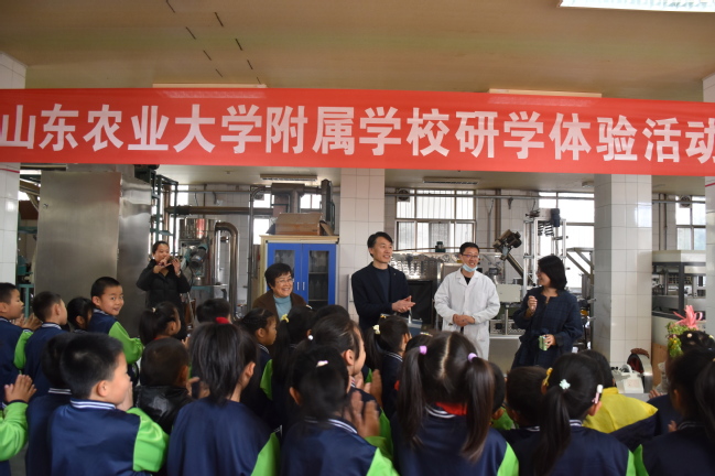 一、二年级的“小小农”们,带着憧憬和对知识的无限好奇,踏入了这所洋溢着活力与学术氛围的校园。活动伊始,泰安市饮食文化协会副会长、食科学院吴澎教授团队的研究生向小学生们讲述了关于青团的两个历史典故,介绍了清明节食用青团的习俗;实验中心刘金光博士讲解了青团制作所需用具、配料等,向同学们演示了制作青团的流程。