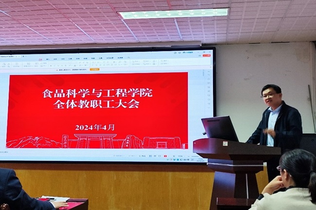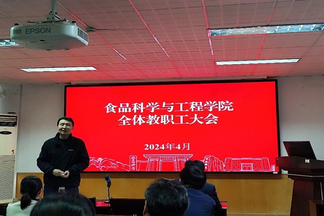 为进一步扎实推进本科教育教学审核评估工作,4月8日下午,食品科学与工程学院在9号楼3楼会议室召开本科教育教学审核评估工作推进会,对迎评工作进行再动员、再部署。学院领导班子、全体教职工参加会议。