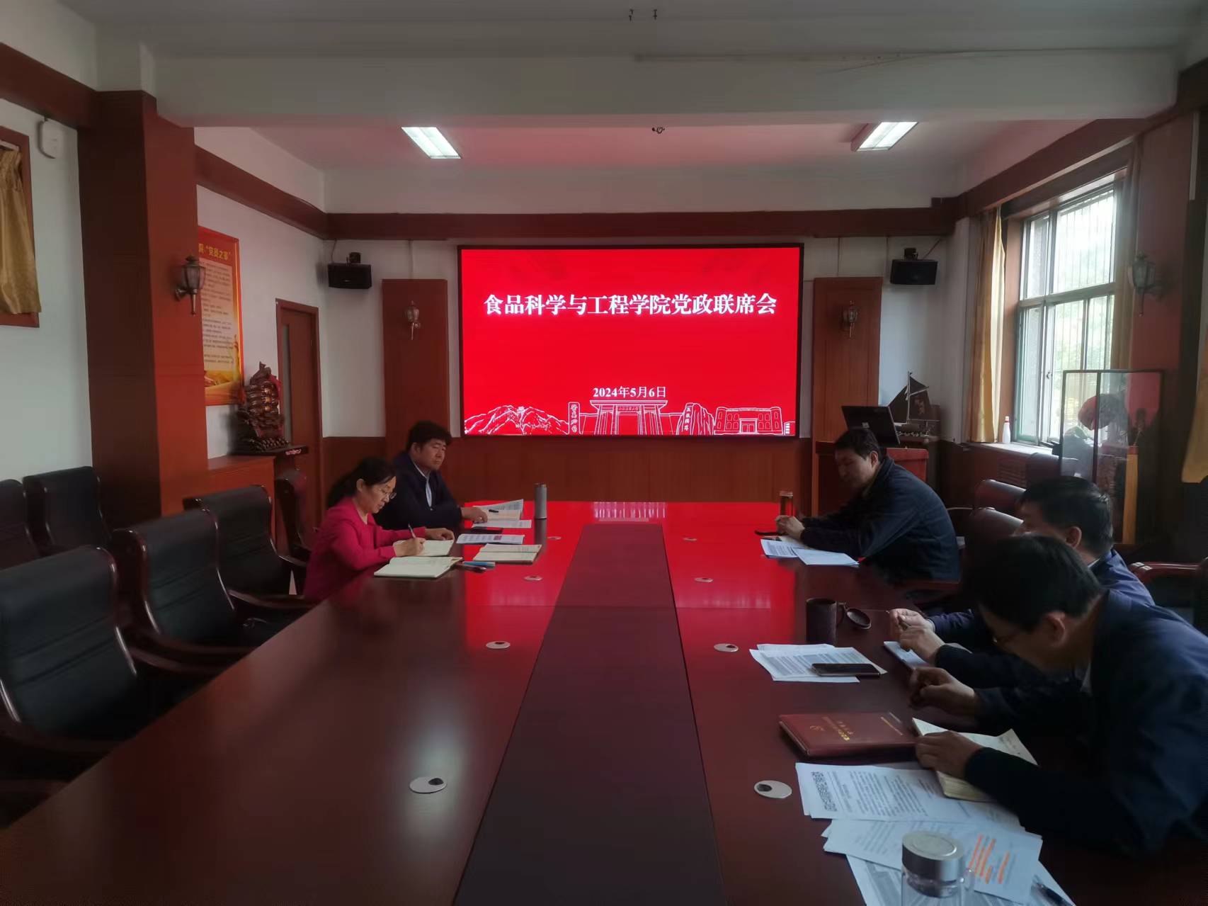 2024年4月9日,食品科学与工程学院在9号楼2楼会议室召开本科教育教学审核评估预评估整改党政联席会。会上,教学副院长李锋首先向与会人员汇报了学院各项迎评准备工作的进展情况及存在的问题。其次,会议重点针对学校第四评审组反馈的学院在本科教育教学审核评估预评中存在的问题进行了专题研究,部署落实整改措施。院长李大鹏结合学院审核评估预评整改工作,提出两点要求:一是做好预评估整改工作方案,细化整改措施,将整改工作落实落细;二是进一步凝练学院办学特色和优势,深入剖析教育教学中存在的问题,完善自评报告。学院党委书记刘希山指出,本科教学是学院立院之本,迎评工作是当前学院各项工作的重中之重,我们一定要以新一轮本科教育教学审核评估和学校冲一流为契机,贯彻落实立德树人根本任务,培育更多知农爱农新型人才。