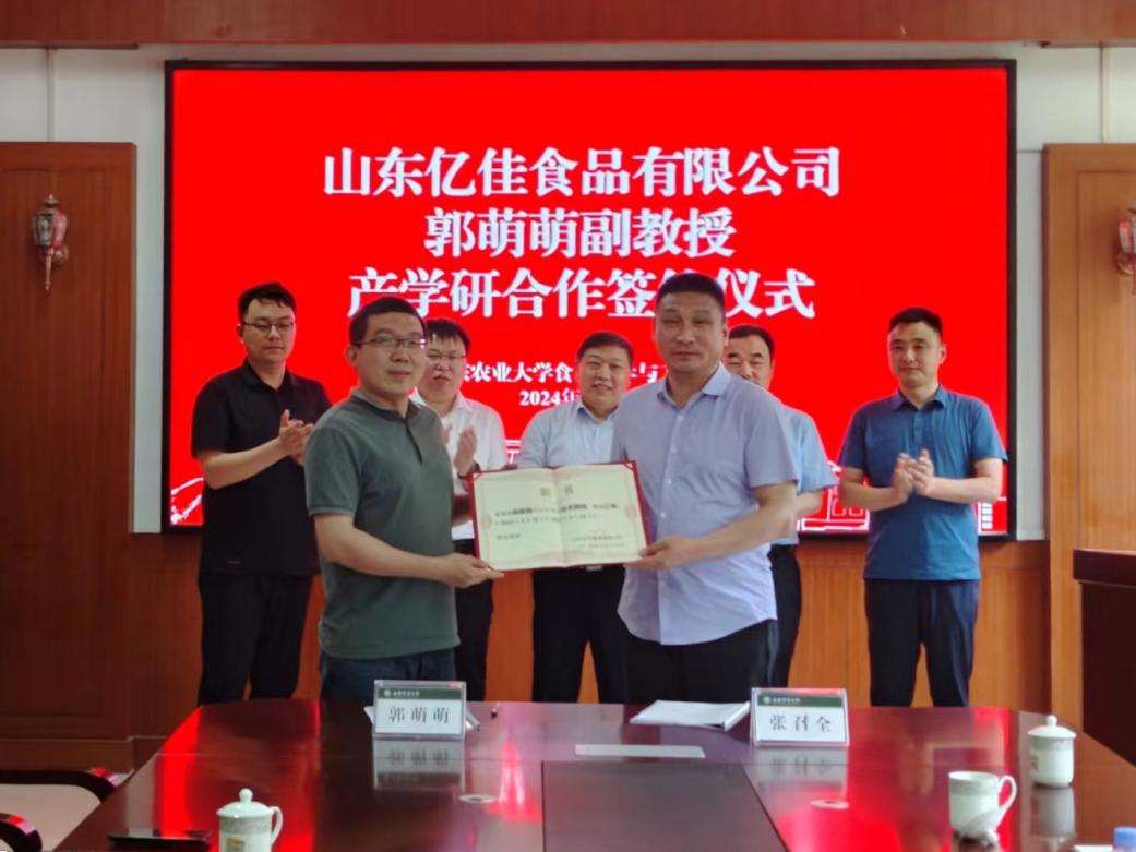 会上,学院发酵团队朱传合教授、郭萌萌副教授等结合研究方向,为企业高质量发展提供了针对性的意见建议和技术支持。山东亿佳食品有限公司负责人与郭萌萌副教授签订技术顾问聘任协议。