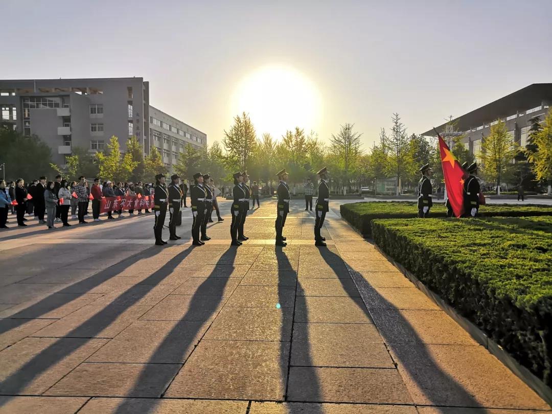 4月15日清晨,400多名青年学子聚集在南校区综合楼广场,观摩升旗仪式,齐唱国歌。