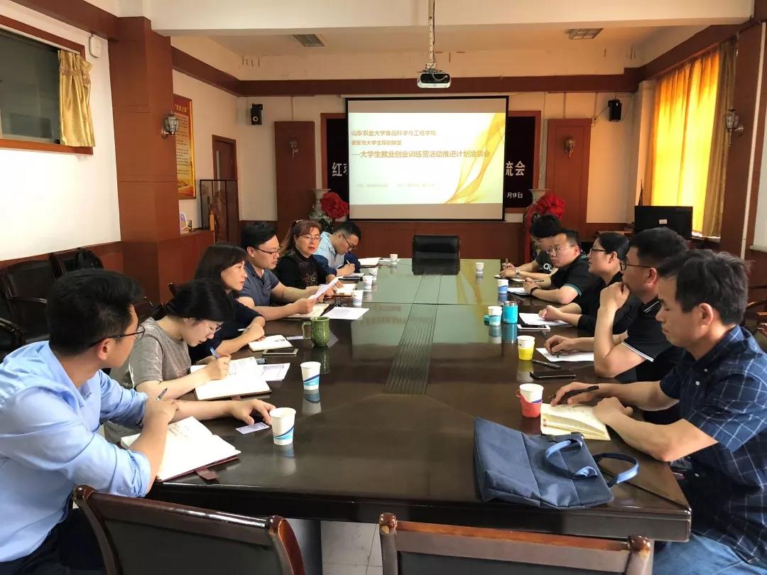 5月15日下午,食科学院联合泰安市大学生双创联盟在学院二楼会议室召开了“大学生就业创业训练营活动推进计划洽谈会”。