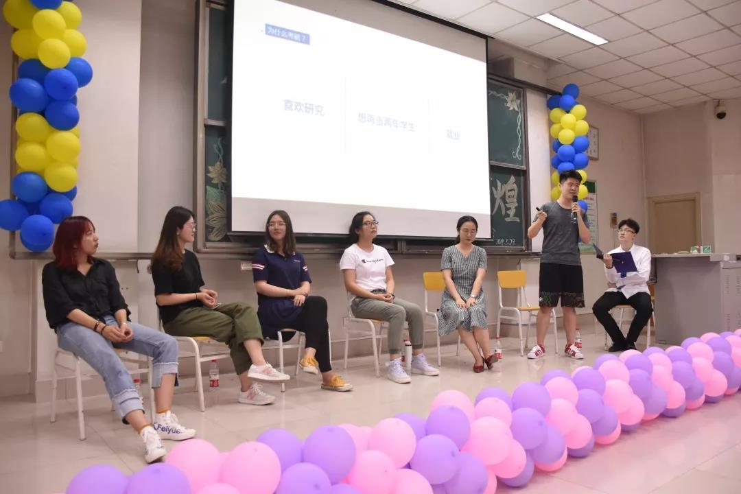 到场的任腾、刘心怡、翟羽婷三位学姐在谈及考研经验时,均谈到学习计划与动手实践能力的重要性。随后,他们又分别就各自的备考经历展开讲解。翟羽婷和高一诺学姐介绍了有关出国留学方面的问题,包括出国申请准备、择校和雅思考试的宝贵经验。田野啸风学长向同学们解答了有关就业方面的问题,他建议同学们要充分了解自身特点,做最适合自己的选择。