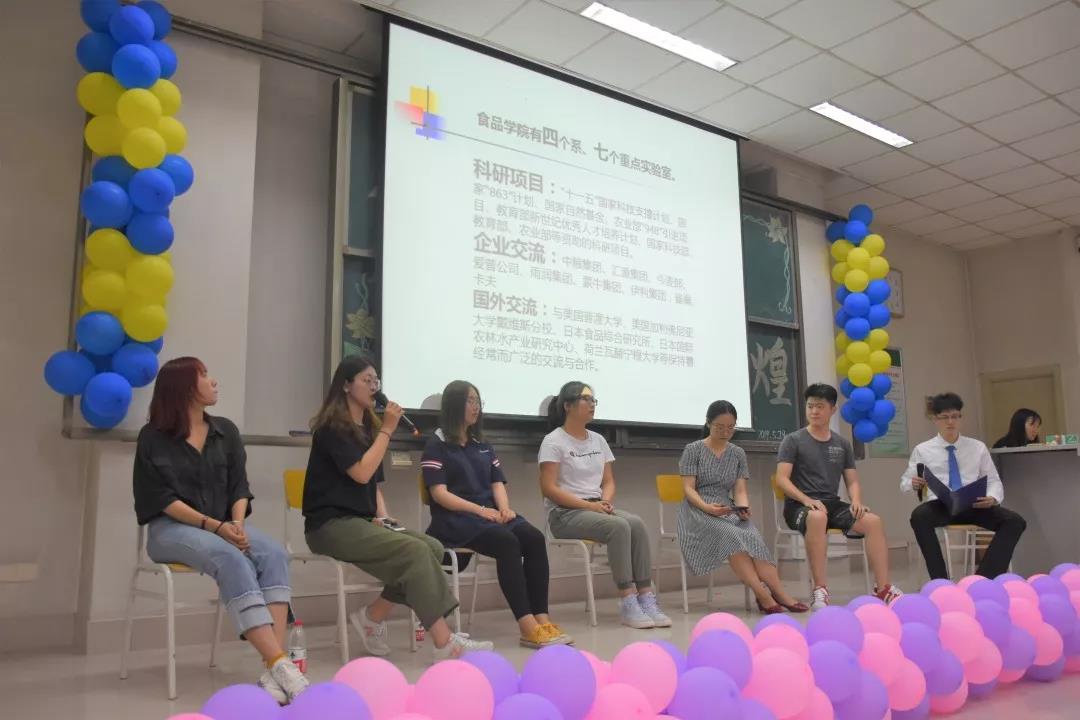 29日晚,食科学院于南校区综合楼N501举办“领略精英风采,造就明日辉煌”优秀毕业生交流会。特邀15级六位优秀学子与同学们进行经验分享,17、18级食科学子参与活动。