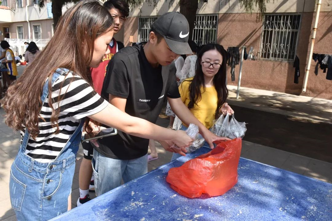 在粽子发放点,同学们自觉有序的进行排队,脸上洋溢的是满满的兴奋与期待