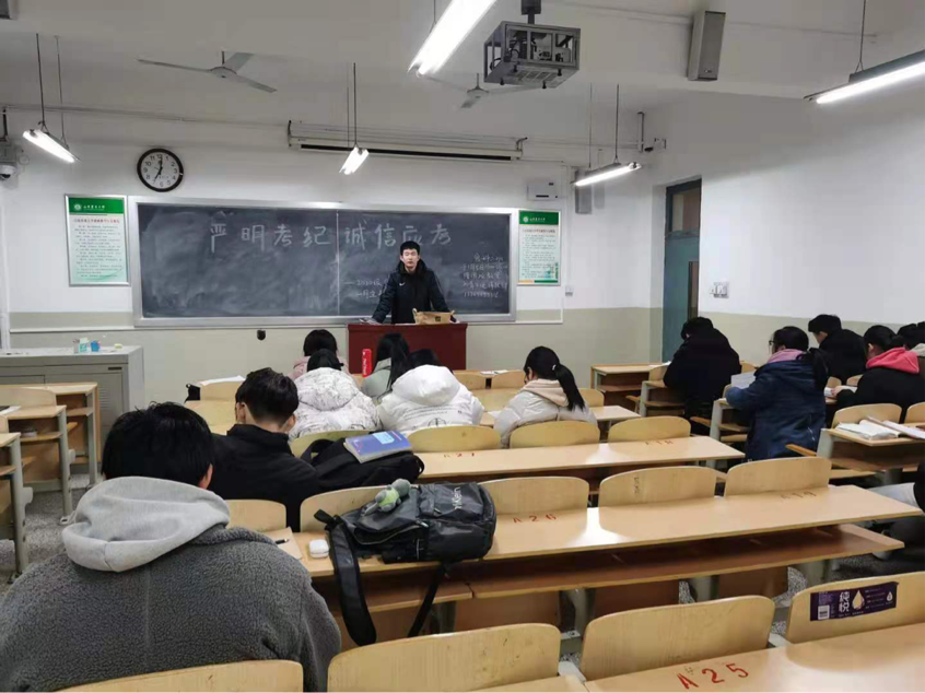 我们班级自行主动组织了一系列帮助大家提升的的班级活动比如学习经验分享会,学习一对一帮扶等活动。同学们互相分享学习经验,取长补短,查漏补缺。通过一学期大家的不懈努力,我们班在期末测试中也取得了挂科率低,优秀率高的理想成绩,这一切都来自于每一个不断奋斗的日夜。