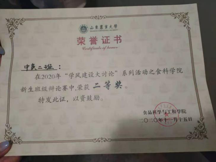 大学的第一场班级辩论赛,辩论赛上中英二班的思维辩手据理力争,口若悬河,经过一番唇枪舌剑,最终杀入决赛。还记得的决赛当晚双方针锋相对地相持着。选手们唇枪舌剑的辩论着。四周的空气似乎凝固了。台下的同学也是情绪高涨,表情随台上的变化而变化,或兴奋激动或屏息凝视,给选手捏一把汗……最终我们获得第二名的成绩,朱晓琦同学获得了最佳辩手。