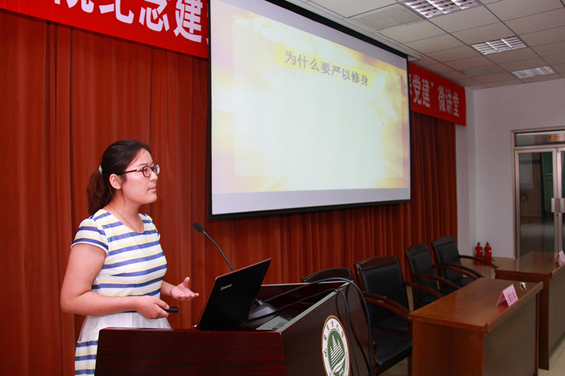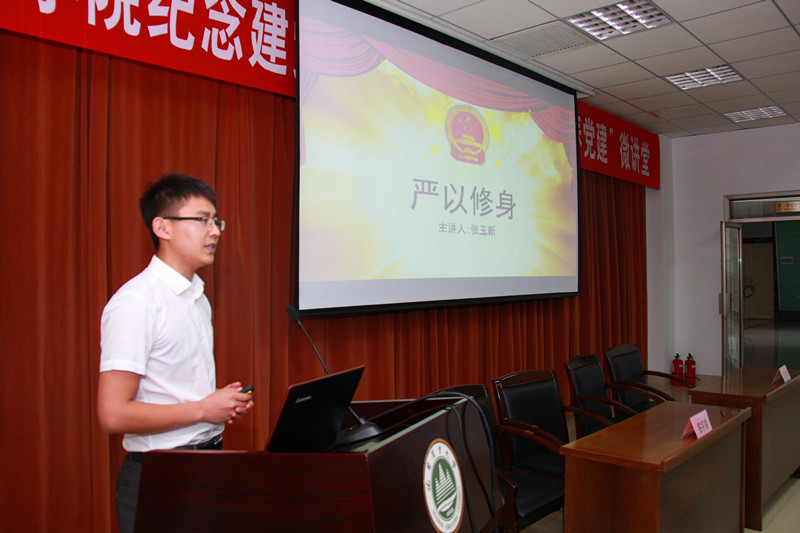 活动中,教工党支部书记与学生党支部书记签订了结对子协议,学院院长王云诚带领新党员进行入党宣誓,3名学生党员围绕着“严以修身”这一专题,以勤学、明辨、笃实为基本要求,结合自身实际,与在座师生交流了心得体会。