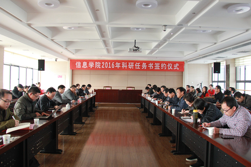 3月16日,信息学院举办科研任务书签约暨科研工作座谈会,副校长张宪省、科技处负责人参加,院长王云诚与13个科研团队负责人签订协议书。