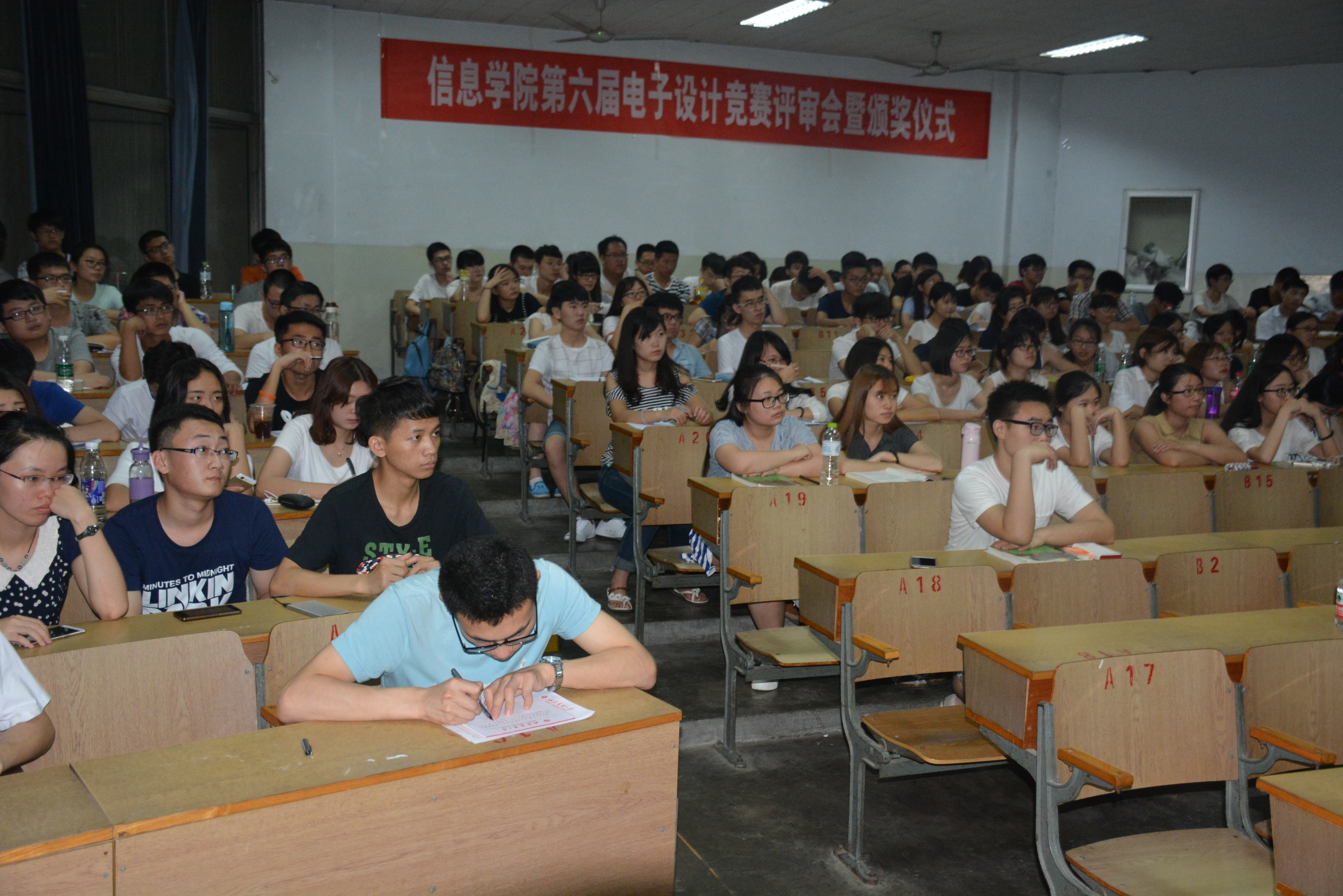 6月26日晚,信息学院第六届电子设计竞赛评审会暨颁奖仪式于北校区5N教学楼成功举办,电子系部分教师与200多名同学参加了此次活动。