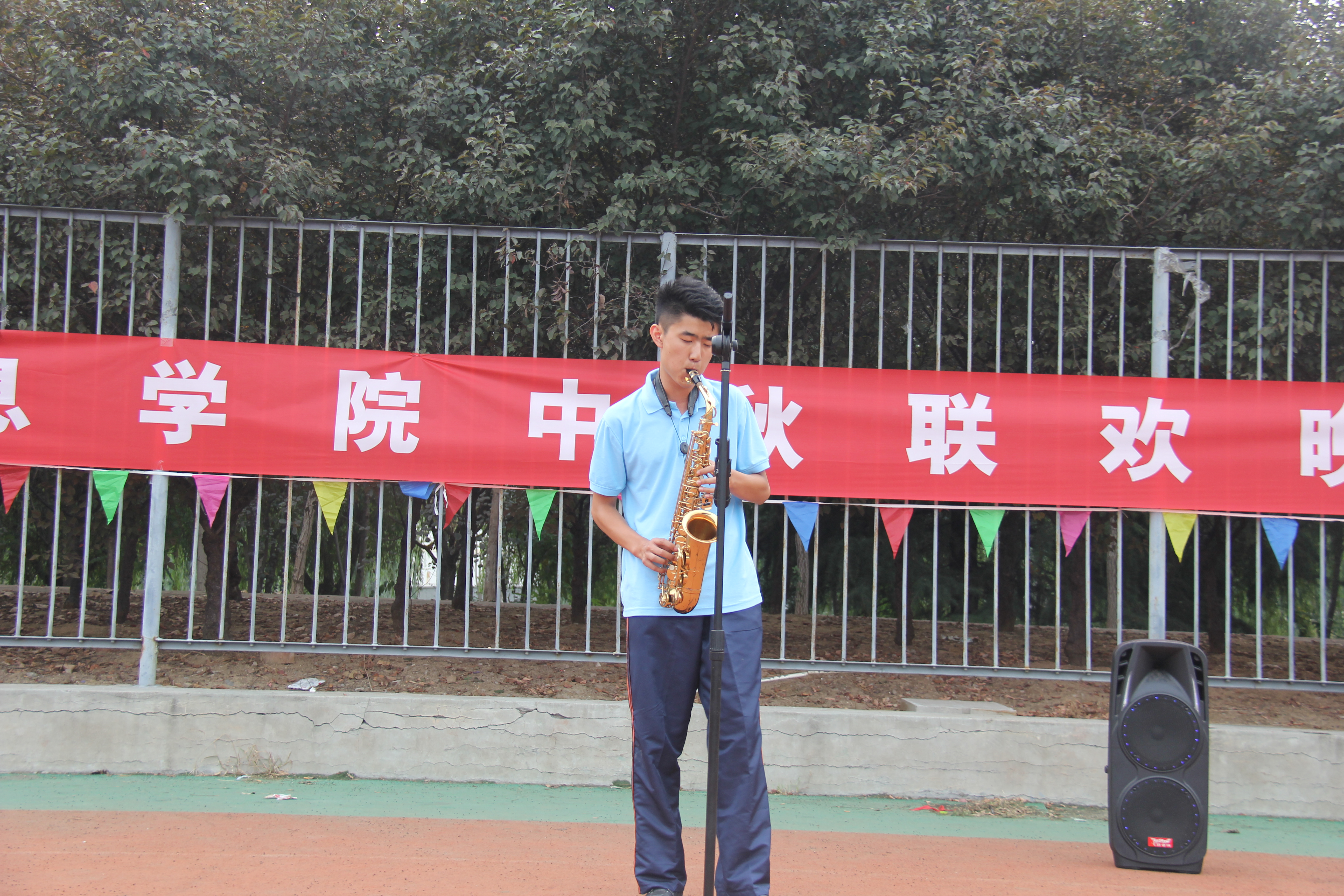 晚会伊始,团委老师代表信息学院全体老师和同学对2016级新生的到来表示热烈欢迎和祝福,对2016级新生提出美好希冀,并送上了中秋寄语。15级学生会成员带来的一段即兴B-box点燃现场火爆气氛,让在场观众眼前一亮,16级新生带来的萨克斯演奏和二胡版《赛马》,一个悠扬抒情,一个激昂振奋,向观众展示了何谓“古典之雅,现代之新”;团委老师带来的曼妙爵士舞蹈将晚会推向高潮。一首赞颂友情的《天使》,赢得了满堂喝彩;李华老师最后以一首歌颂军旅的《小白杨》诠释了军训的意义,激励新生不怕苦不怕累,晚会在真诚恳切的祝福生与久经不息的掌声中画下圆满的句号。学院为大家精心准备的月饼与水果,更是让大家感受到了学院家一样的温暖。