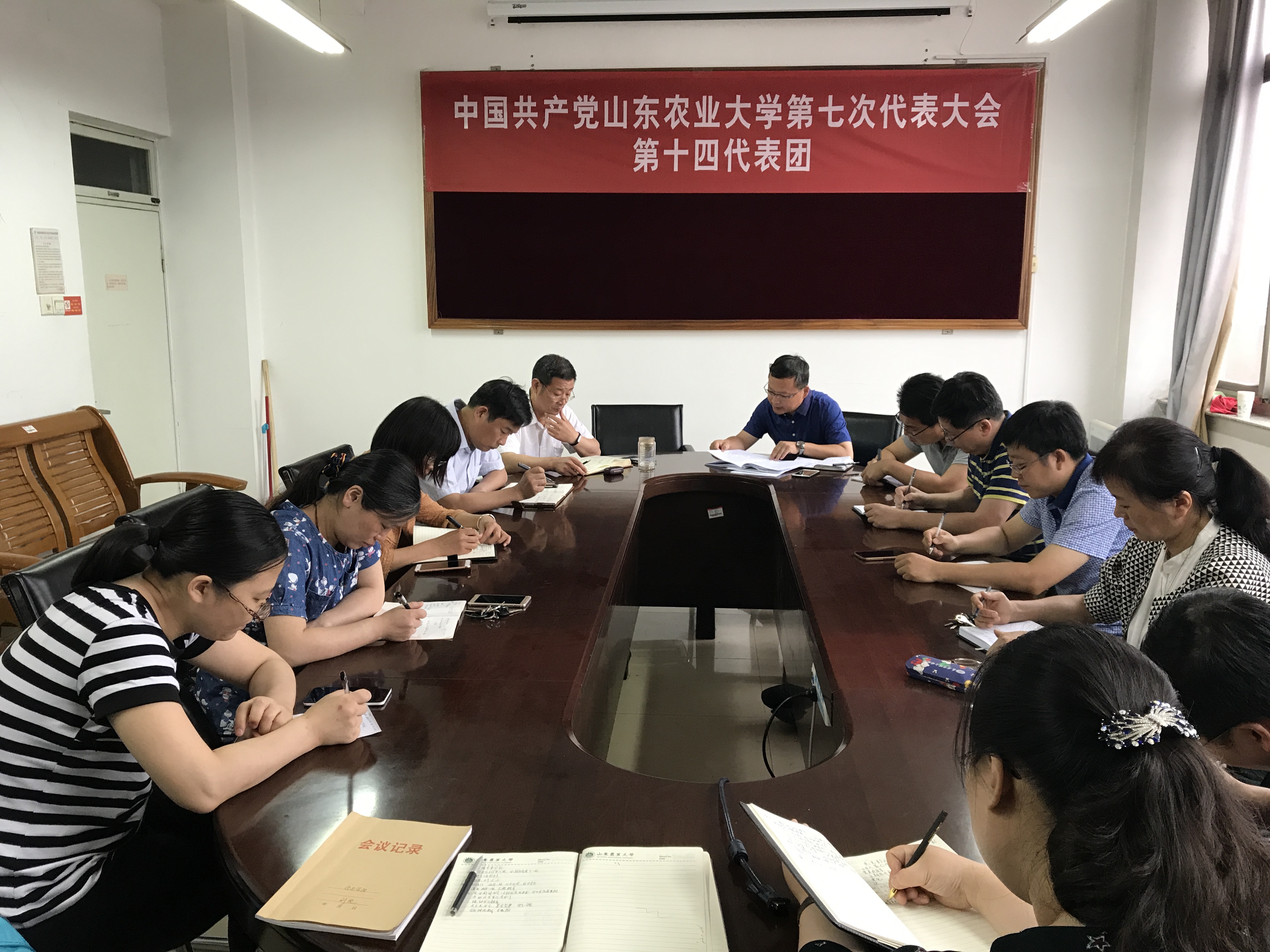 6月5日下午,信息学院党委中心组在文理大楼1202召开专题会议学习宣传贯彻我校第七次党代会精神,会议由学院党委书记李广松主持,学院全体中心组成员、各党支部书记参加。 会上,学院党委书记李广松首先传达了关于认真学习宣传贯彻学校第七次党代会精神的文件和会议要求,并结合党代会报告原文对学习宣传贯彻我校第七次党代会精神的重要意义、重要内容和精神实质、如何学习宣传贯彻和组织进行了解读。他指出中国共产党山东农业大学第七次党代会是在喜迎党的十九大和省第十一次党代会胜利召开之际,在学校实施“十三五”规划、推进一流大学和一流学科建设的关键时期召开的一次重要会议。随后,他又带领学习了徐剑波书记在第七次党代会上的报告,徐剑波书记所作的报告站位高,总揽全局、主题突出、求真务实,既有鲜明的思想性、前瞻性,又有很强的战略性、实践性,特别是报告中提到的学校“一三三六”总体发展思路和主要任务,是指导全校各项事业发展的纲领性文件。 最后,李广松强调,全体党员和师生员工要充分认识学习宣传贯彻学校第七次党代会精神的重要意义,结合学院“两学一做”的学习教育活动和加强和改进工作作风的开展,深刻学习和领会党代会精神,与实际工作结合起来,切实将党代会的精神落到实处。在学习宣传贯彻党代会精神时应做到:一是要分层传达,以党支部和各系为单位,把第七次党代会精神传递给每位教职工,做到学习要实、工作要实、成效要实;二是全体教职工应明确身份,尽职履责,严格纪律,守好底线,服务大局,改革创新,自觉服从学校、学院的统一安排;三是院领导应明确职责,主动作为,分工合作,注重细节,不推不靠;四是全体教工党员应履行党的职责,严守党的纪律,做好党的工作,用党代会精神统一思想,用党的路线凝聚发展共识,为学校实施“十三五”规划和创建“双一流”大学而奋斗。