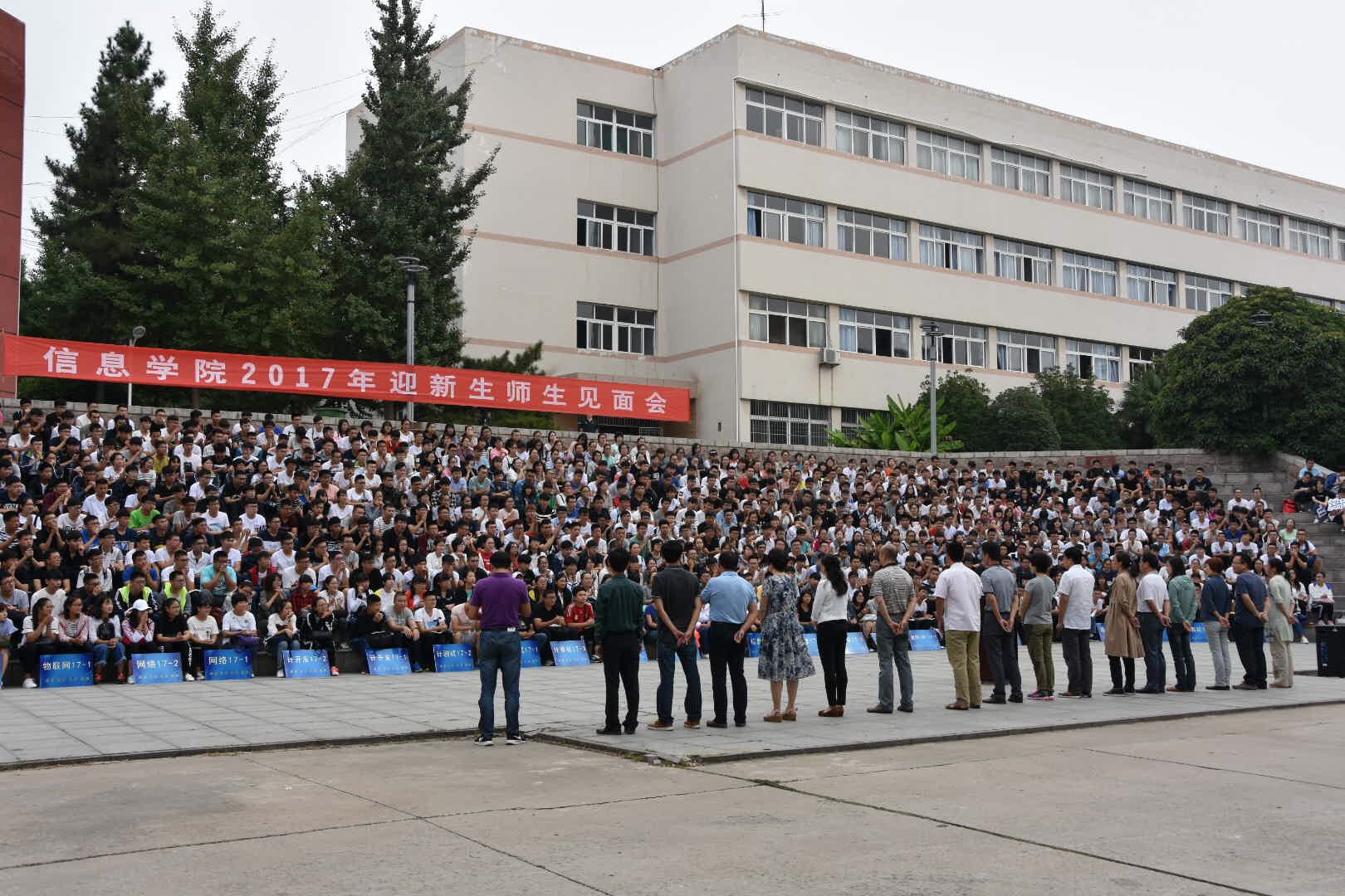 9月2日上午,信息学院2017级迎新生师生见面会在东校区青年广场举行,学院领导、各系、中心主任、专业主任、新生班主任及各系教师代表、全体辅导员及及2017级全体新生参加了此次大会。