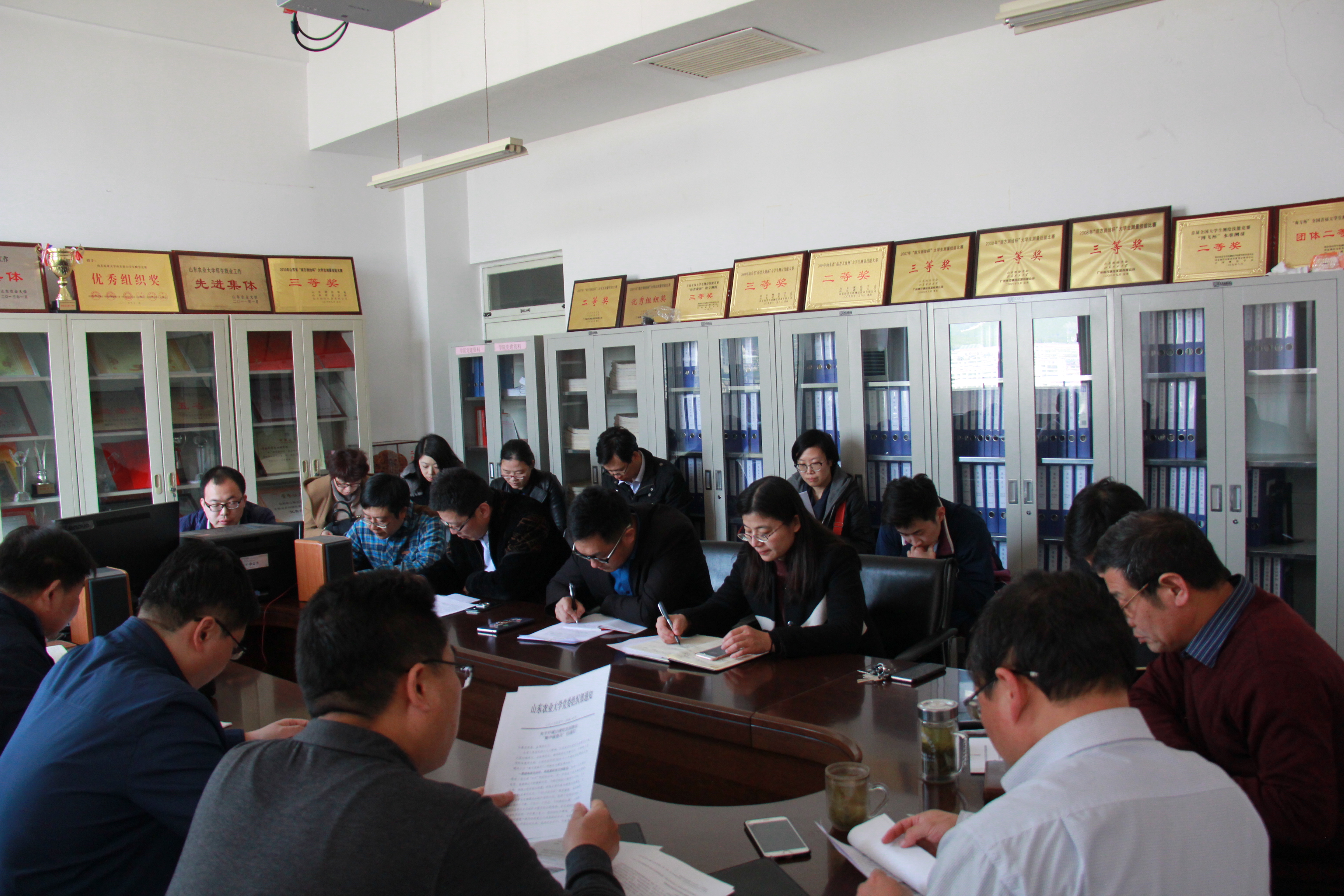 会议传达了学校《关于开展过硬党支部建设“集中督查月”的通知》,以及《中共山东农业大学委员会办公室党委中心组 2018 年理论学习安排意见》文件精神。会后,与会人员集体观看了《中国共产党第十九届中央委员会第三次全体会议公报》和《习近平参加山东代表团审议》视频,共同学习十九届三中全会会议精神。