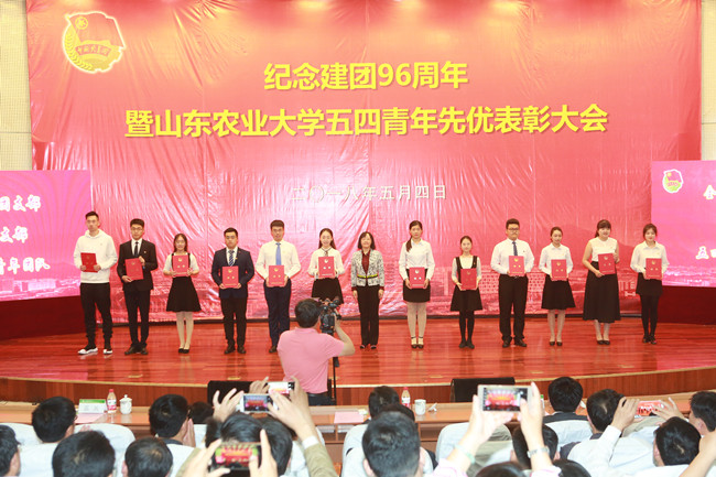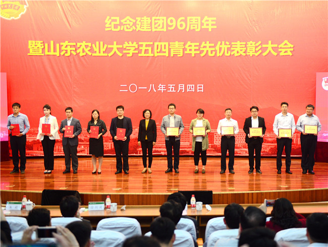 不忘初心跟党走,青春建功新时代。54日,学校在文理大楼报告厅举行纪念建团96周年暨山东农业大学五四青年先优表彰大会。学校领导徐剑波、朱莉、杨天梅、张然出席活动并为青年先优集体和个人颁奖。