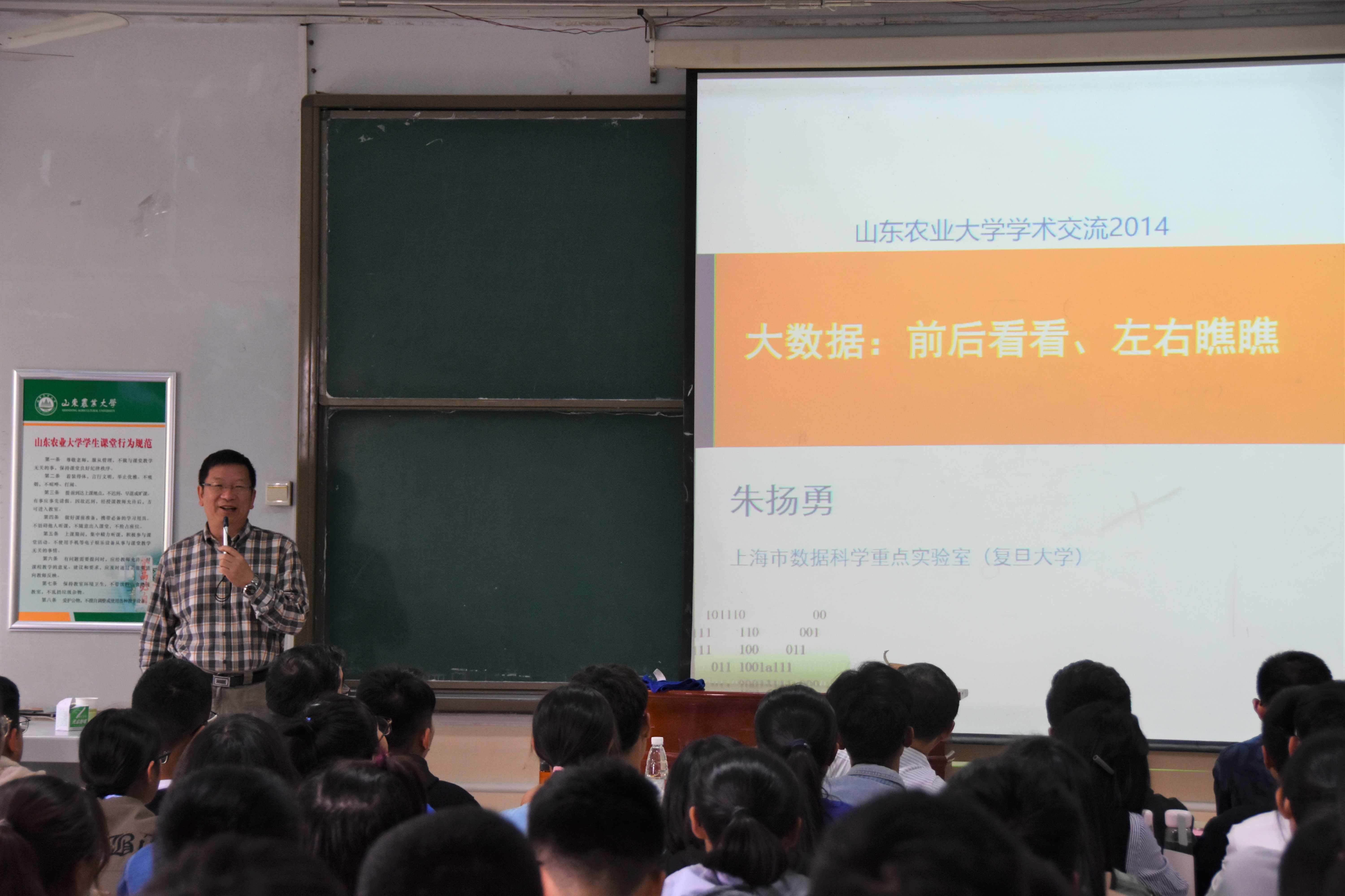 9月27日下午,信息学院于东校区教学楼315成功举办数据科学与大数据技术专题报告。本次报告特邀复旦大学计算机科学技术学院教授、博士生导师朱扬勇作为主讲人,学院党委书记李广松、农业大数据研究中心常务副主任宋长青出席此次报告,18级部分新生参加。