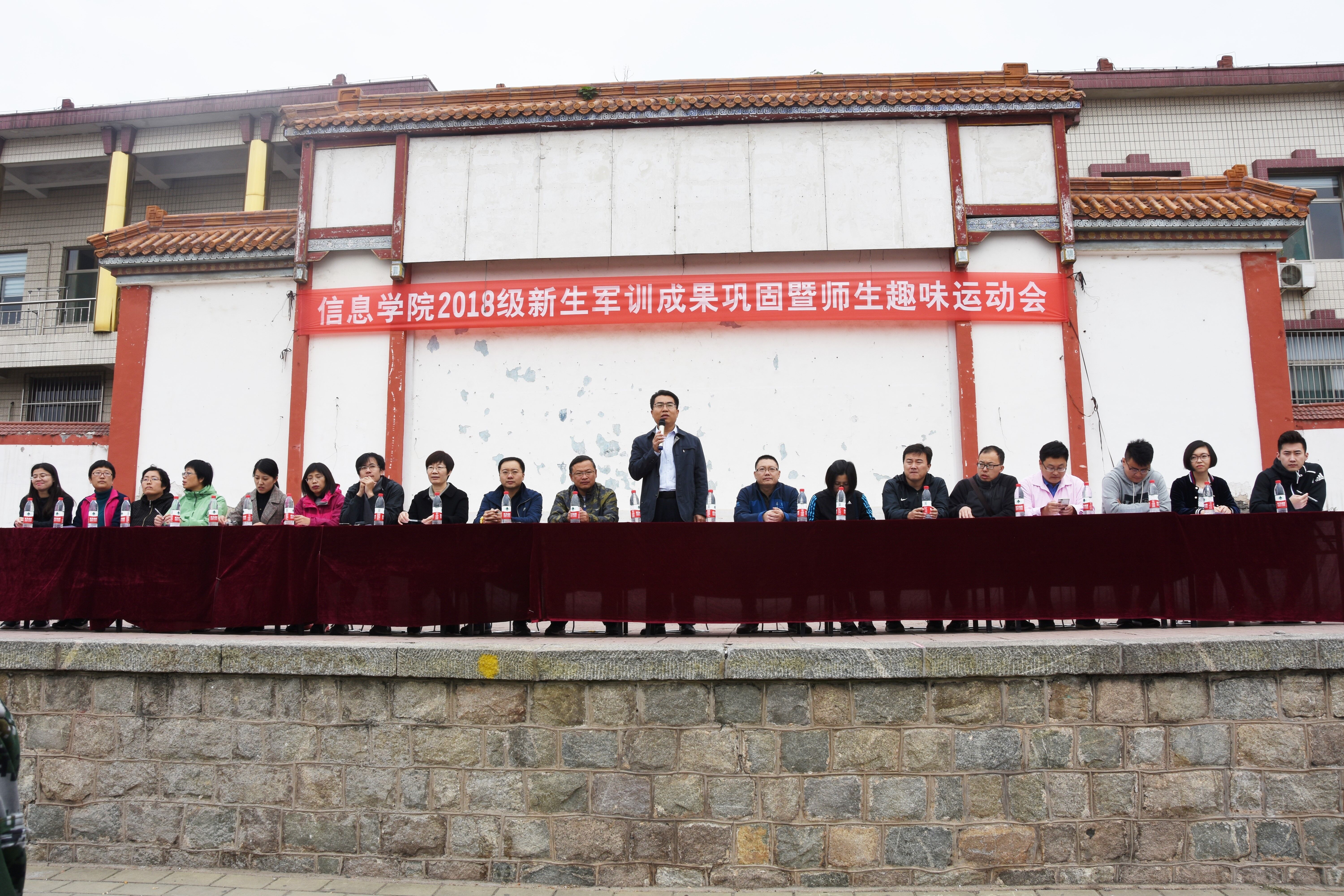 10月21日,信息学院于东校区林校操场成功举办2018级新生军训成果巩固暨师生趣味运动会,信息学院党委书记李广松、党委副书记李华、部分系主任、专业主任、党外人士及2018级新生班主任出席此次活动,信息学院2018级全体同学参加。