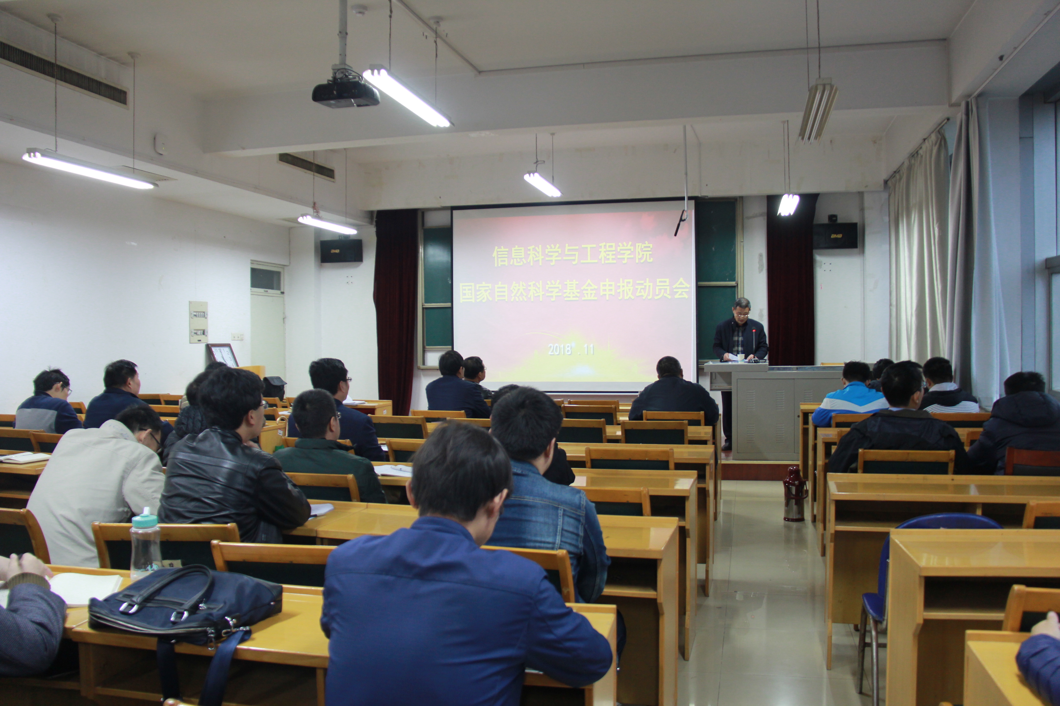 11月6日下午,信息学院在文理大楼804召开国家自然科学基金申报动员会,信息学院党委书记李广松主持会议,院长李西灿出席会议,学院分管院长和教学科研人员代表参加会议。