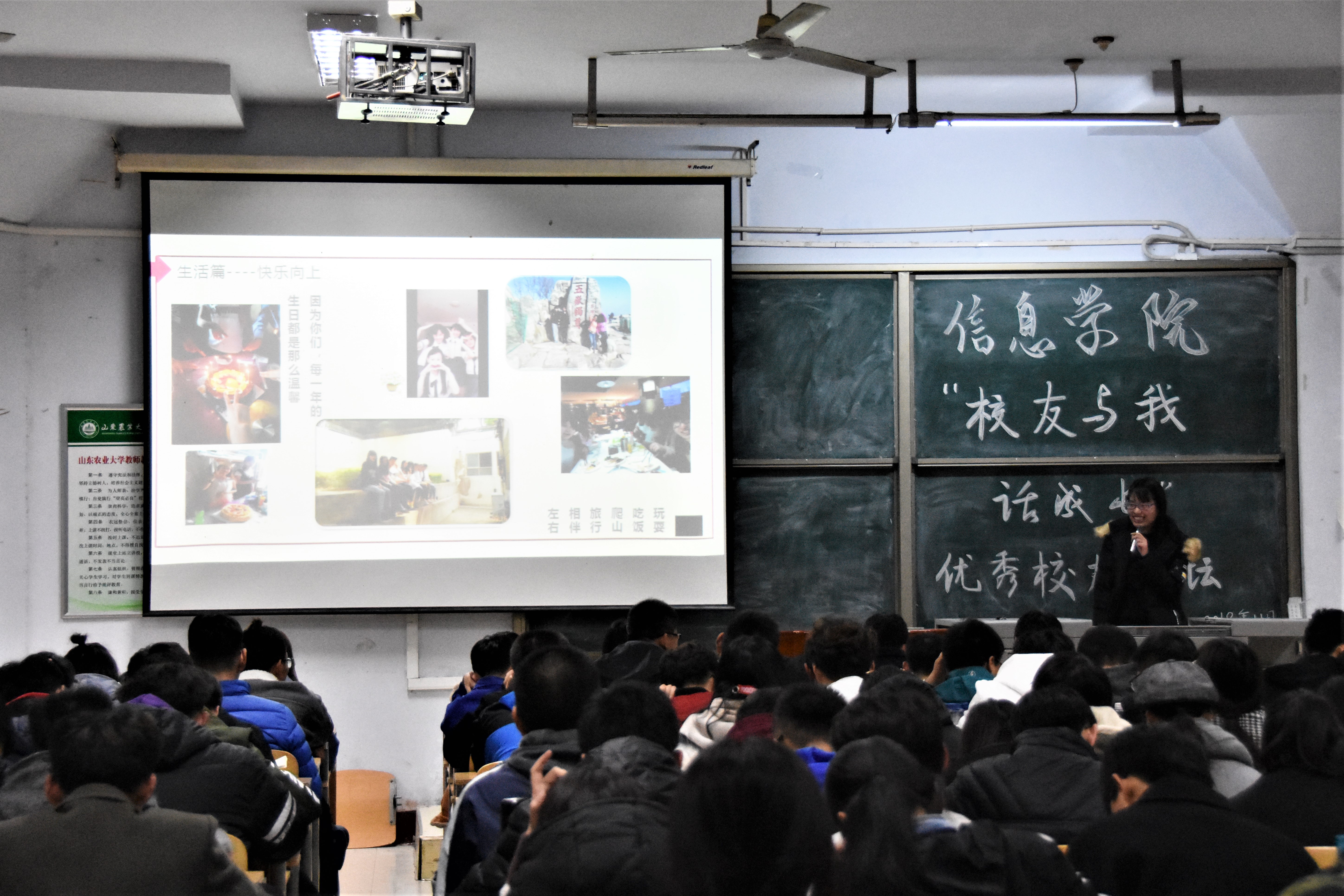 11月17日晚,信息学院于东校区图书楼201教室举办“校友与我话成长”优秀校友论坛。学院特邀推免至山东大学的14级通信工程专业刘美娟为我院18级电子系全体同学做报告。