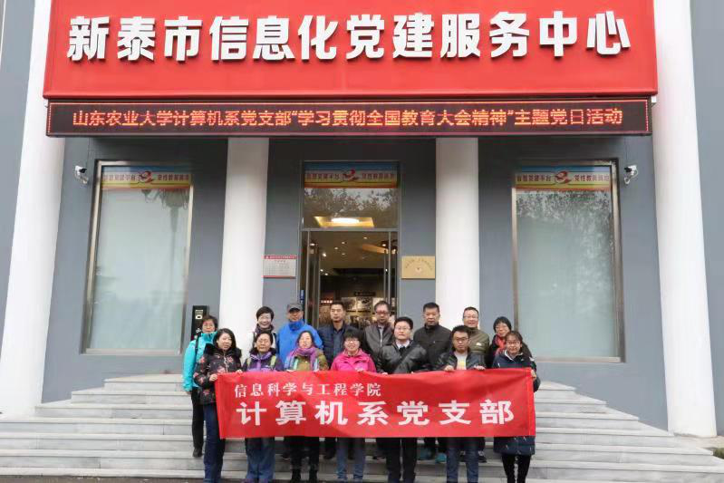 为学习贯彻全国教育大会精神,进一步激发全体党员教师干事创业、担当作为、勇于奉献的精神,11月17日,计算机系党支部组织党员教师奔赴沂蒙革命老区新泰,参观新泰市信息化党建服务中心和新泰市龙廷镇革命史纪念馆,开展“学习贯彻全国教育大会精神、践行新时代高教40条”主题党日活动。