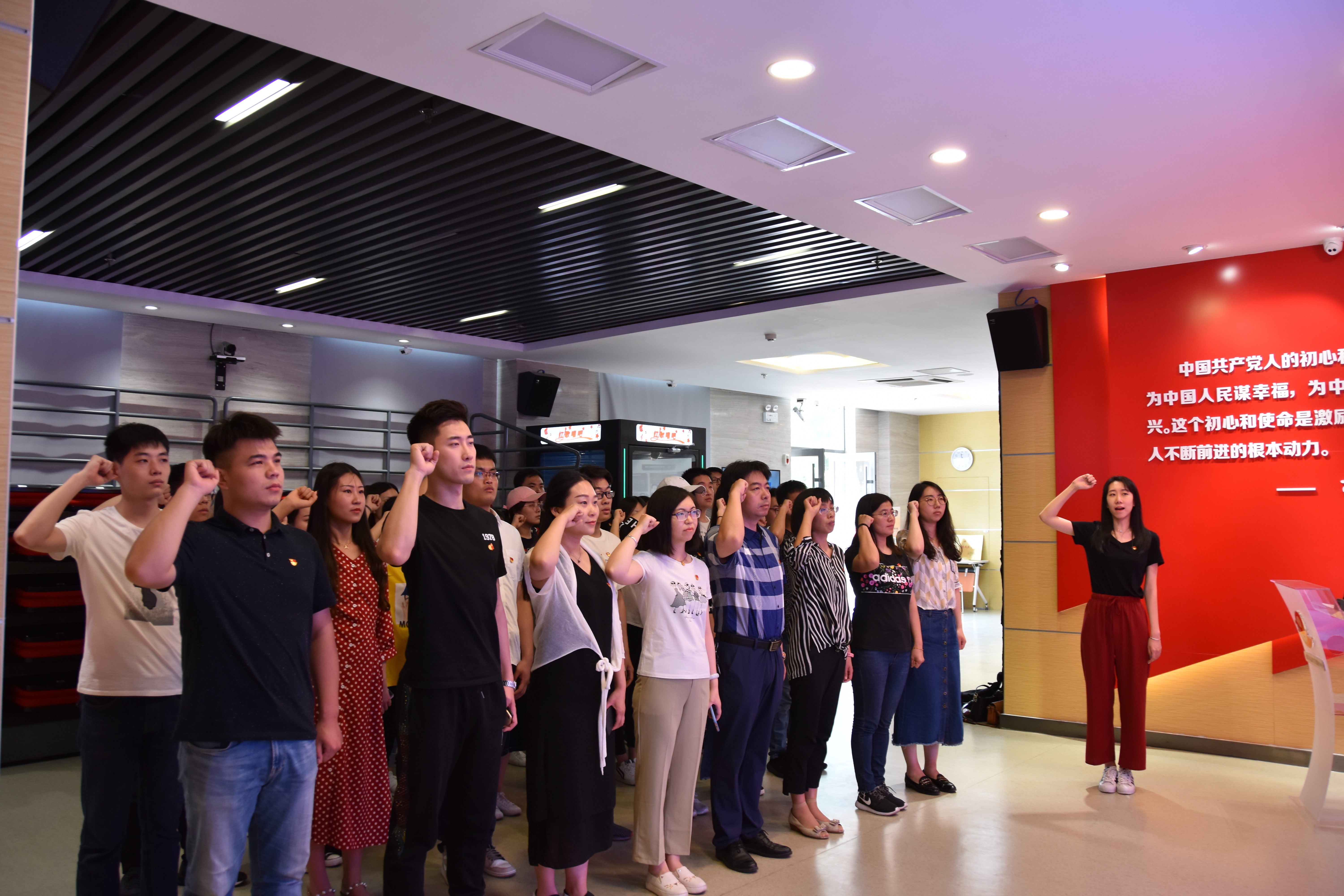 在新泰市信息化党建服务中心,党员们先后参观了新泰党史展、党建成果展等,深入了解革命先辈投身革命、英勇战斗、不怕牺牲的光荣历史,感受新中国成立后新泰市波澜壮阔的发展历程。大家在红色书吧驻足,体验现代科技的魅力。“我志愿加入中国共产党……对党忠诚,积极工作,为共产主义奋斗终身。”面对鲜红的党旗,全体党员庄严地举起右拳,集体重温入党誓词,再次坚定曾经的决心和信念。