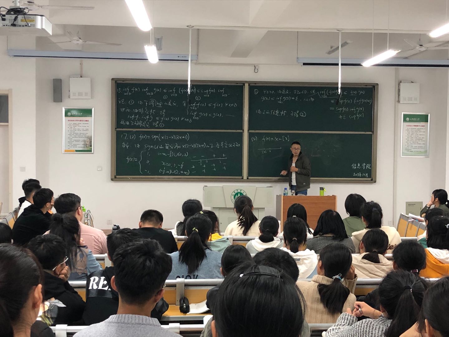 为扎实开展“不忘初心、牢记使命”主题教育,10月10日至10月17日期间,学院数学系冯巍、刘梦良、王韵等教师利用晚自习时间深入课堂,及时掌握学情,分别就学生在高等代数、数学分析等课程学习过程中存在的问题进行讲解,为学生指点迷津。