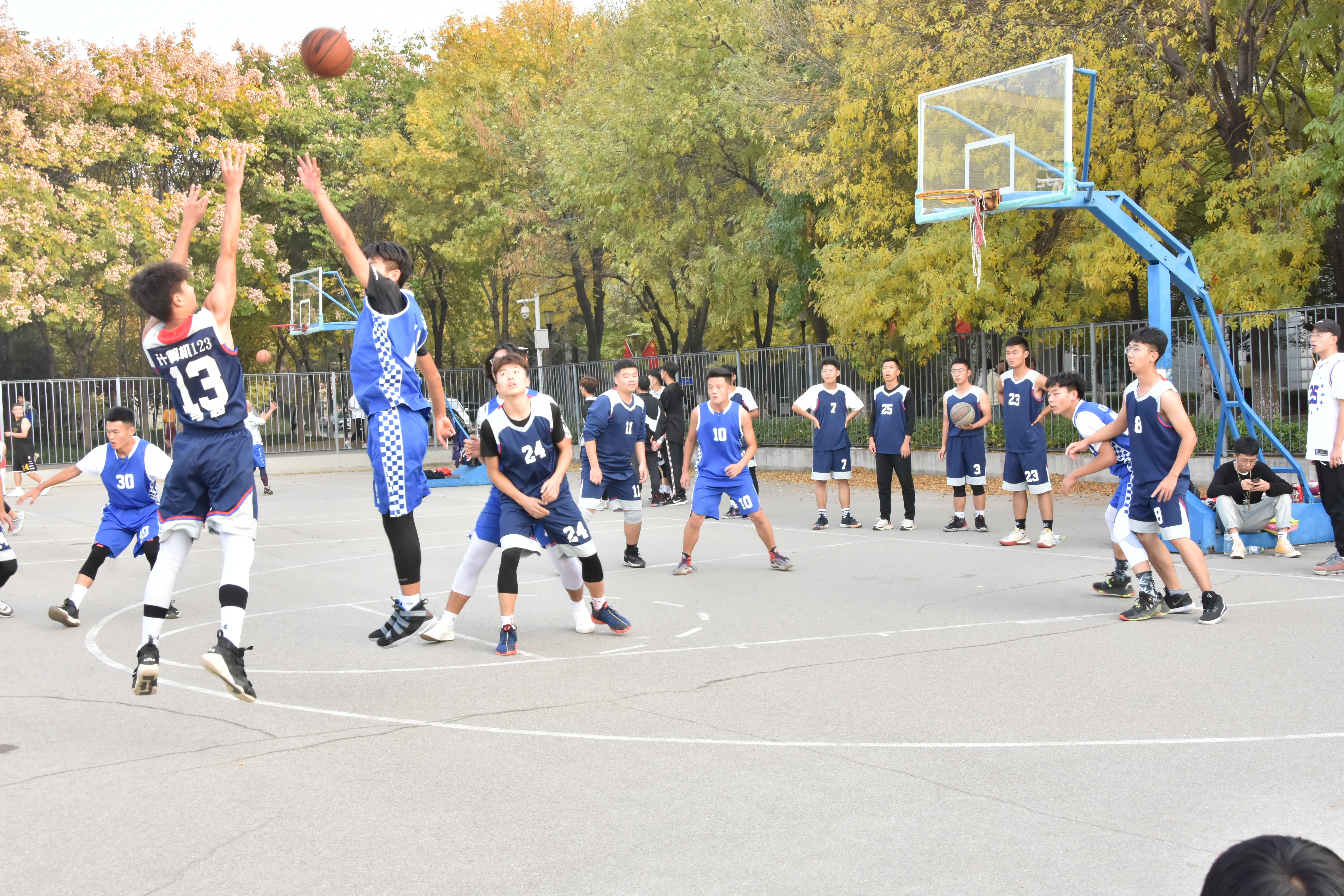 正值金秋时节,信息学院于11月2日南校区操场举办新生篮球赛闭幕式。经过两周循环赛的激烈比拼,计算机一二三班、电子、测绘和计开发四个代表队最终突出重围,挺进决赛。