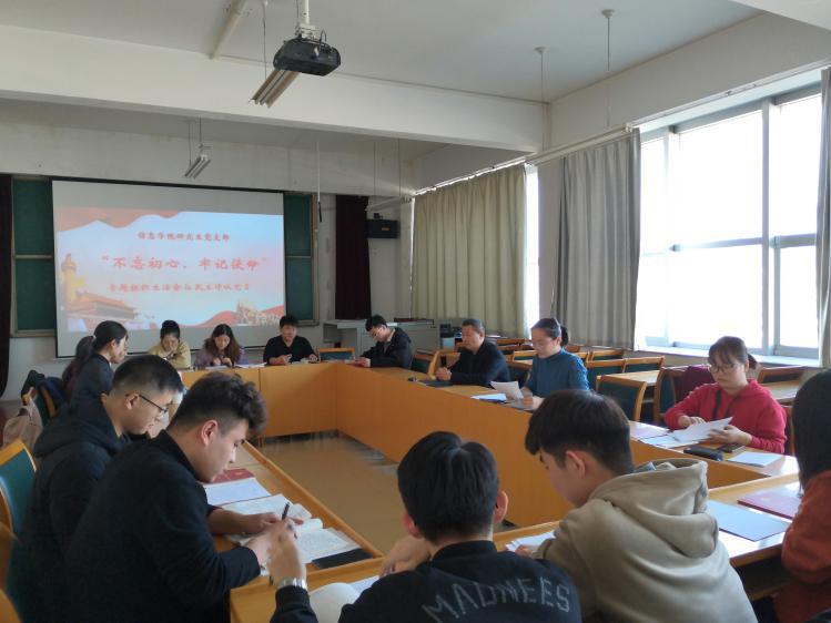 12月3日下午,信息学院研究生党支部在文理大楼804召开“不忘初心、牢记使命”主题教育专题组织生活会,民主评议党员。会议由研究生党支部书记王娇主持,学院党委副书记、院长李西灿出席会议并讲话。