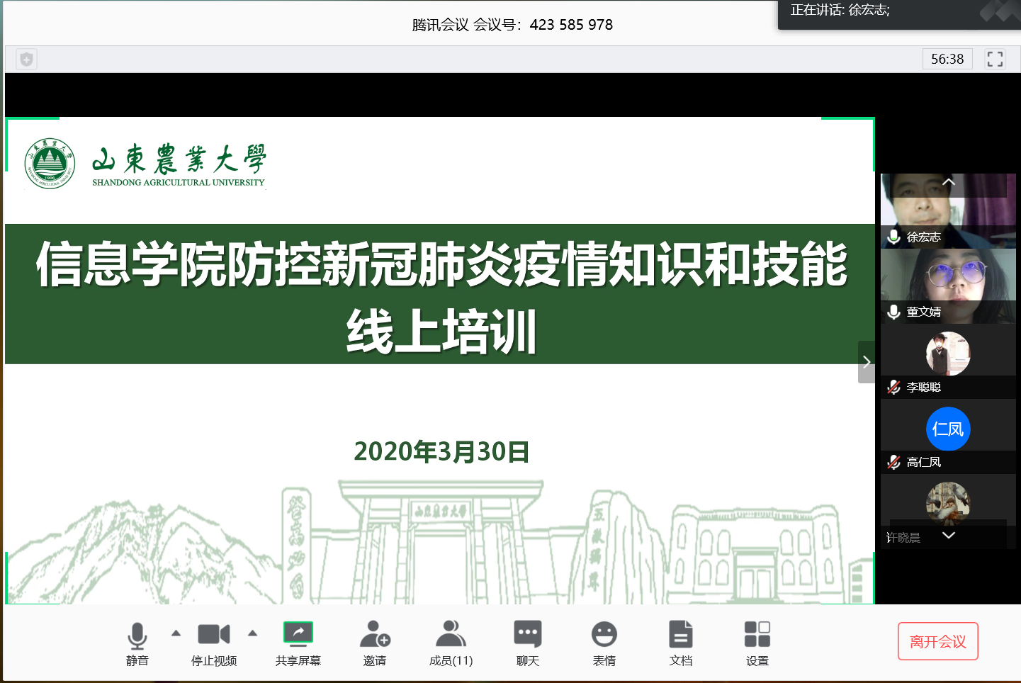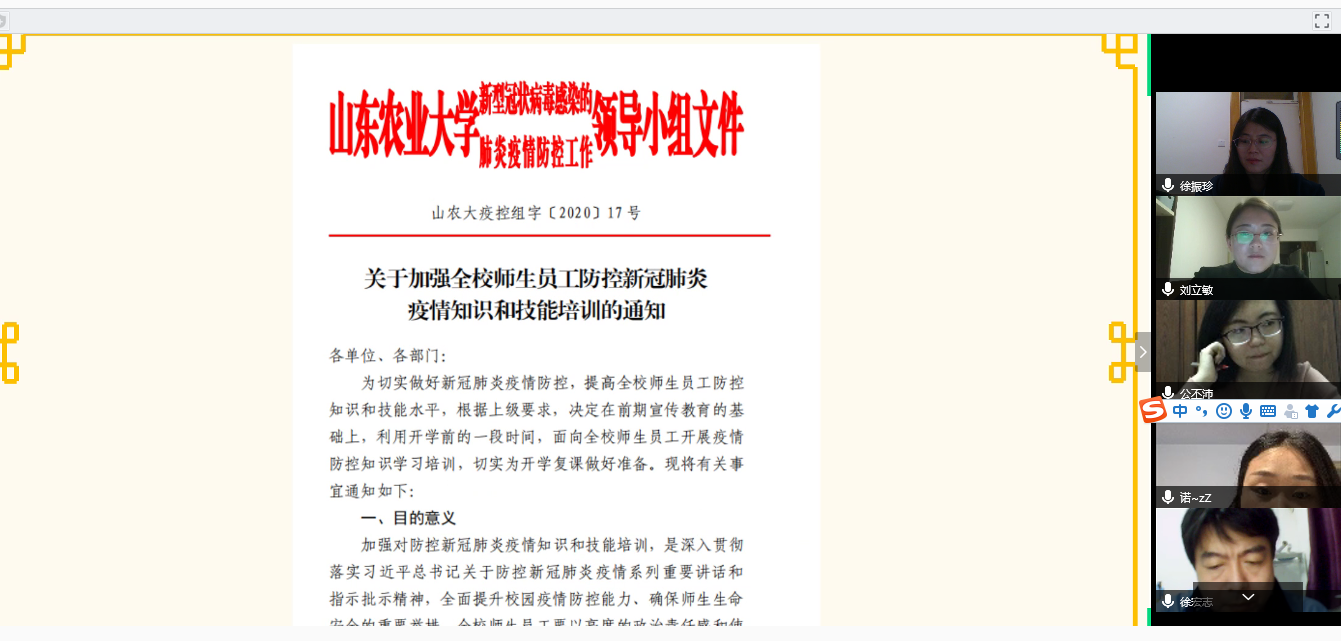 培训伊始,徐宏志向全体参训人员传达了学校《关于加强全校师生员工防控新冠肺炎疫情知识和技能培训的通知》要求,并着重强调,团委老师应积极主动学习疫情防控的知识与技能,使防控流程入脑、入心。同时,组织主要学生干部、学生党员、全体学生分批次、分模块、分主题完成培训,确保疫情防控工作压实做细。随后,全体参训人员根据培训要求认真学习了基础知识技能和学生管理人员专门防控技能,在本科生疫情防控、春季开学工作、校园安全管理、疫情应急处理等方面强化校园防疫共同体意识、对标工作职责、提升防控能力,以期为疫情期间全院师生的身心健康、有序学习提供切实保障。