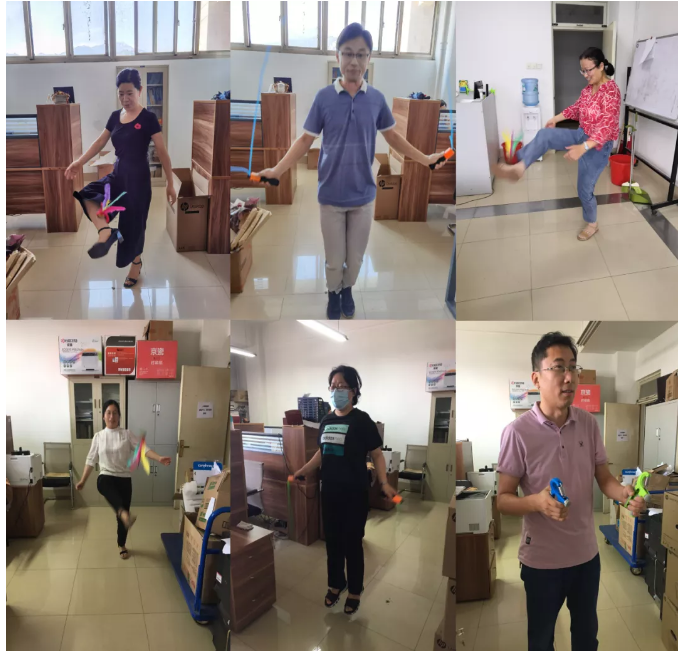 图2 信息学院教工运用学院工会购置的健身器材开展健身活动