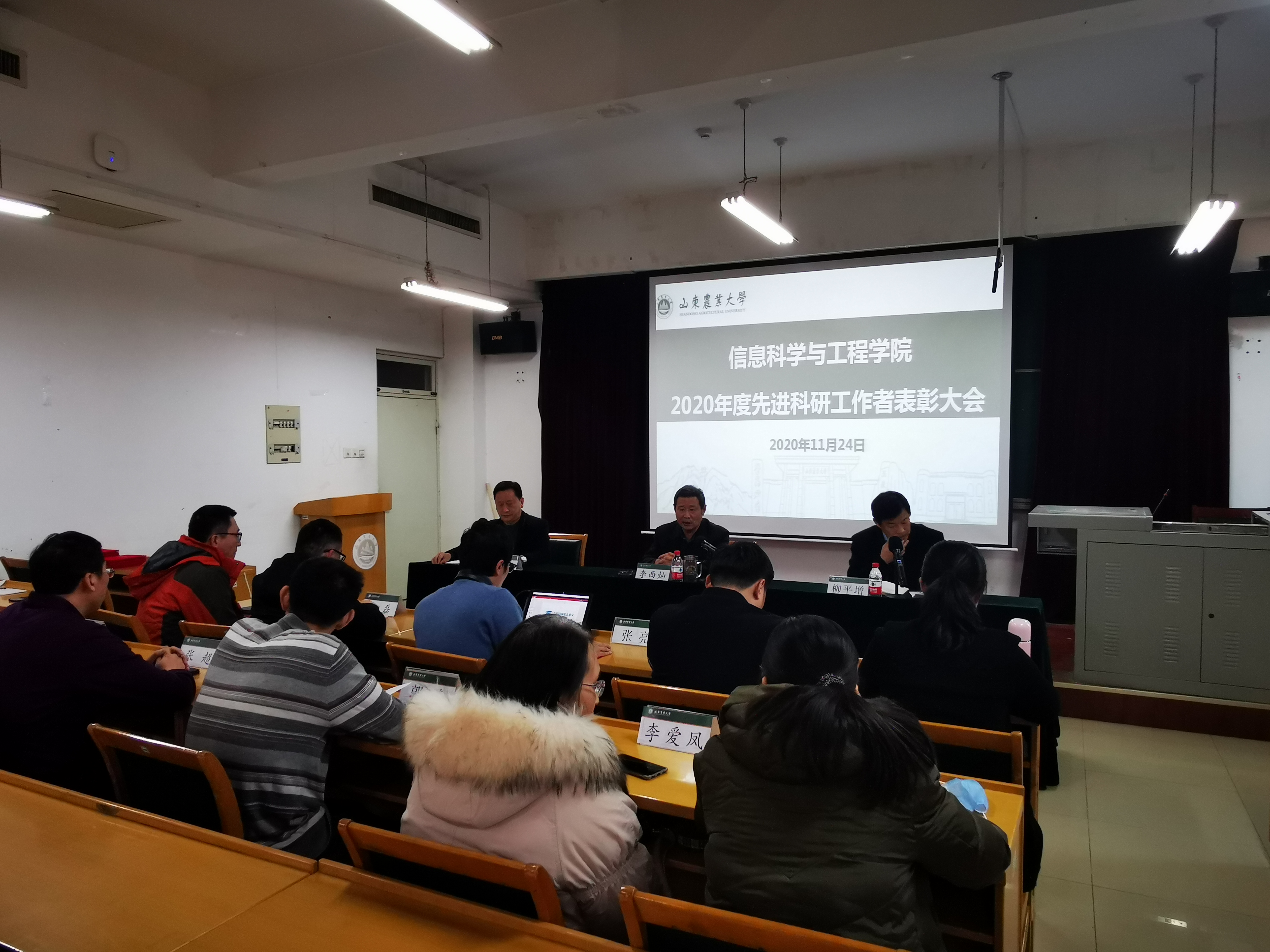 张洪进宣读了学院关于表彰2020年度先进科研工作者的文件。