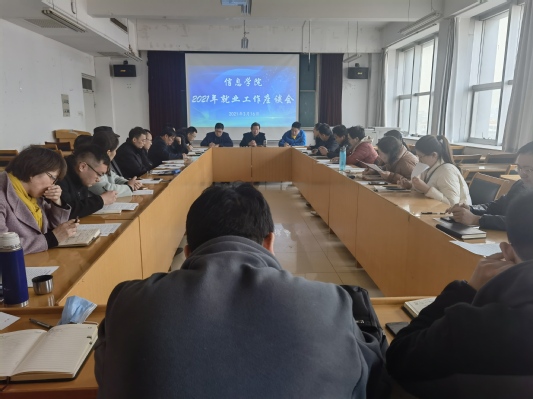 3月16日下午,信息学院在文理大楼804召开2021年就业工作推进会,学院领导班子、系主任、专业主任、辅导员以及2021届毕业生就业指导老师参加会议。会议由党委副书记徐宏志主持。