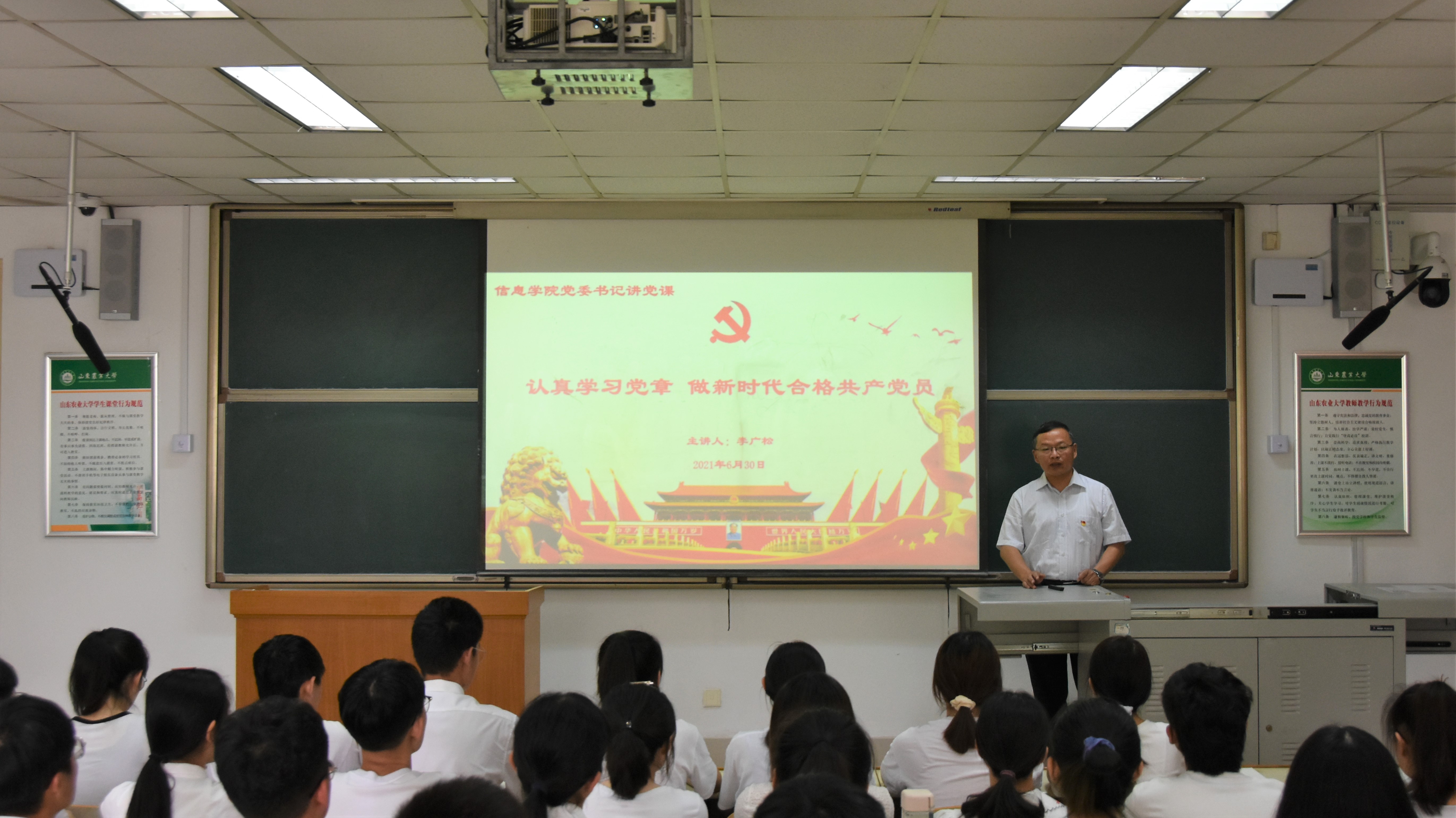“建党百年话党章”。在全国上下喜迎中国共产党百年华诞之际。学院党委书记李广松同志为学生党员讲授了一场内容丰富、别开生面的主题党课。