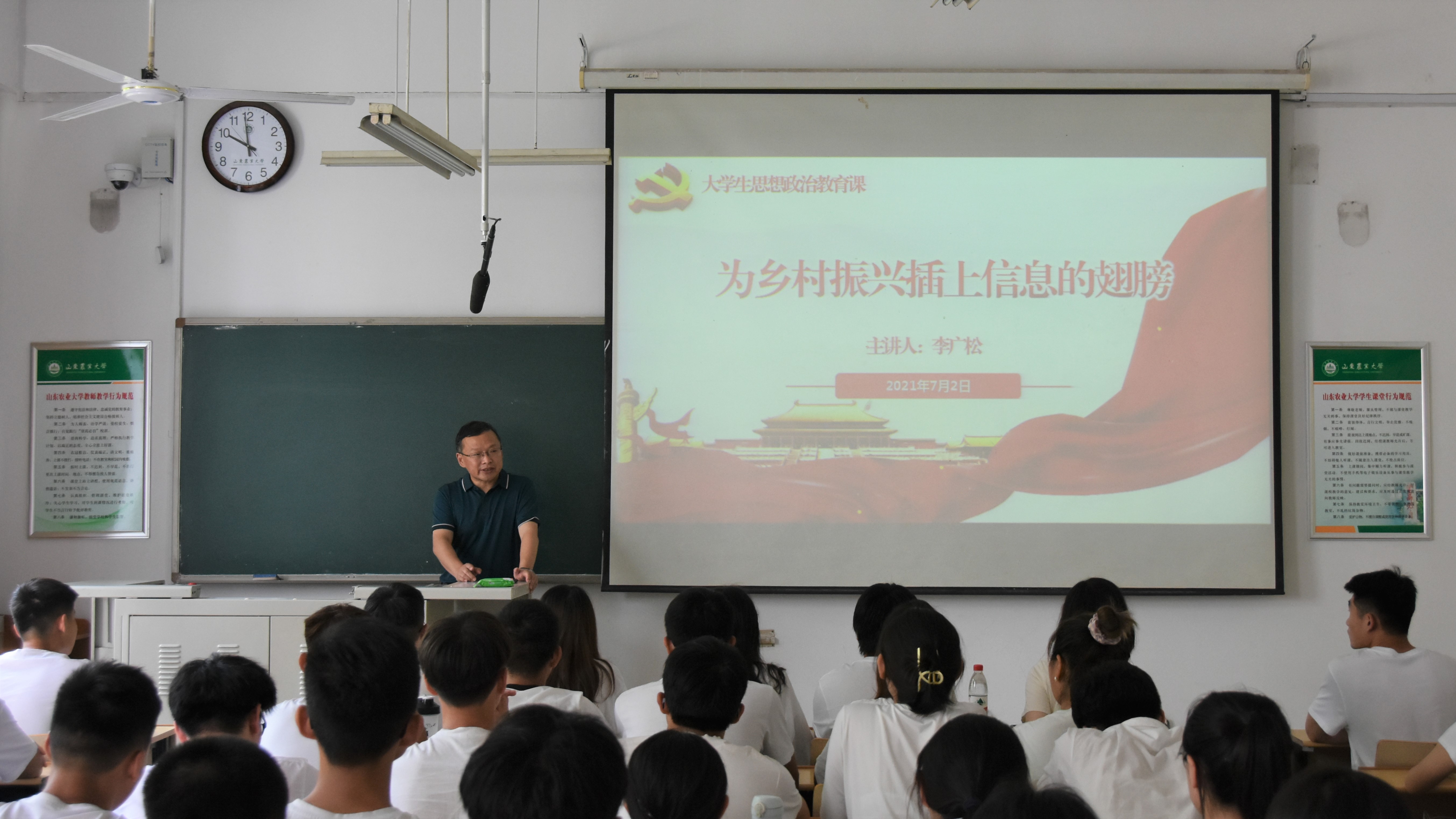 7月2日上午,学院党委书记李广松以 《为乡村振兴插上信息的翅膀》为题,结合自身在冠县挂职的工作经历和收获,围绕信息技术如何推进脱贫攻坚与乡村振兴有效衔接,助力乡村振兴释放新动能,最终实现农业农村现代化的相关内容,为青年学生讲授了一堂别开生面的思政课。