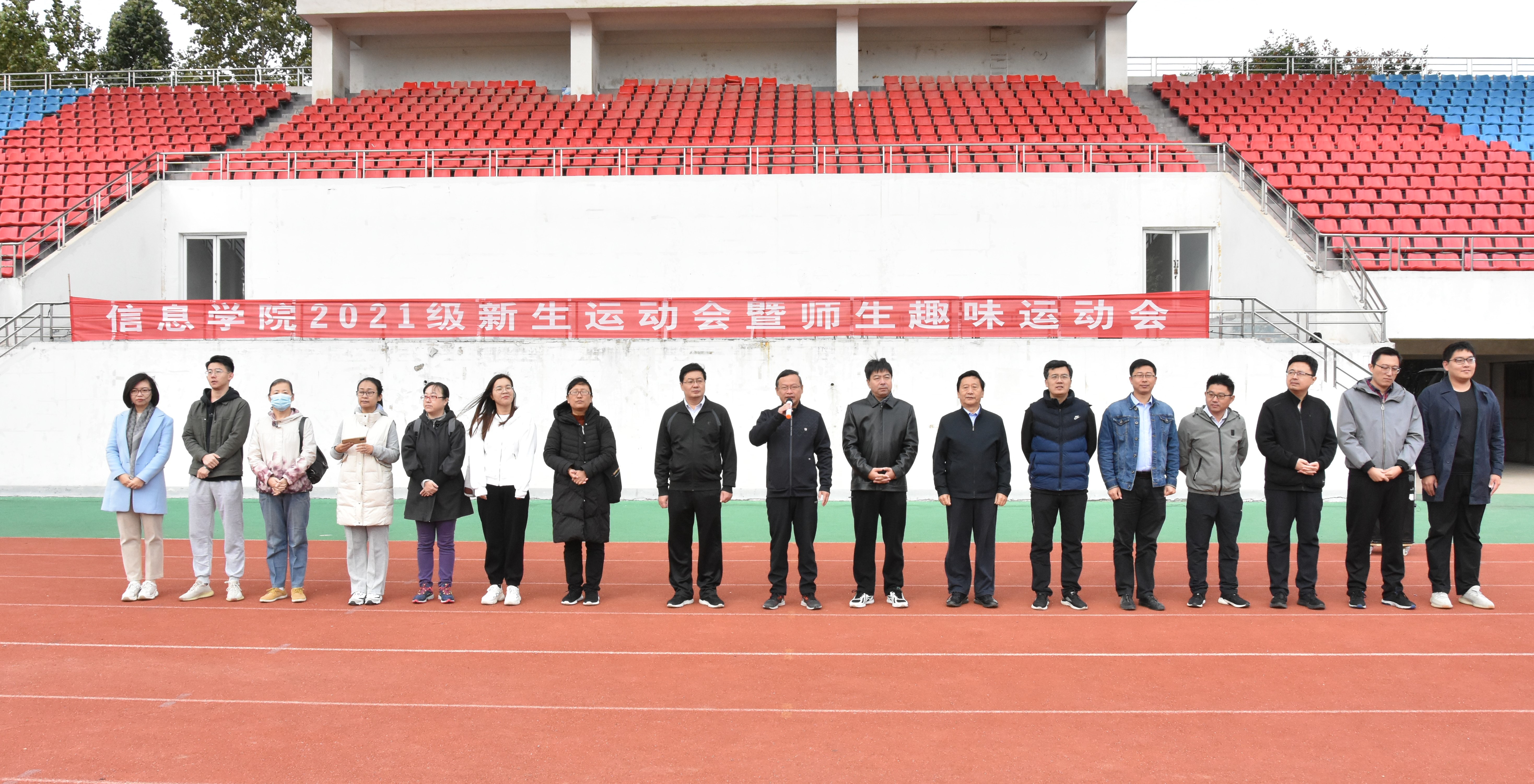 10月16日,信息学院于泮河校区体育场成功举办2021级新生运动会暨师生趣味运动会。学院党委书记李广松参加活动并宣布2021级新生运动会暨师生趣味运动会开幕;党委副书记徐宏志、副院长王志军、副院长张洪进出席;新生班主任、团委老师以及2021级全体新生参加。