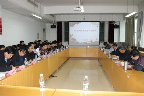2022年1月5日,信息学院在文理大楼804召开支部书记例会,学院党委书记李广松主持会议,副书记徐宏志、学院副院长王志军、各支部书记出席会议。