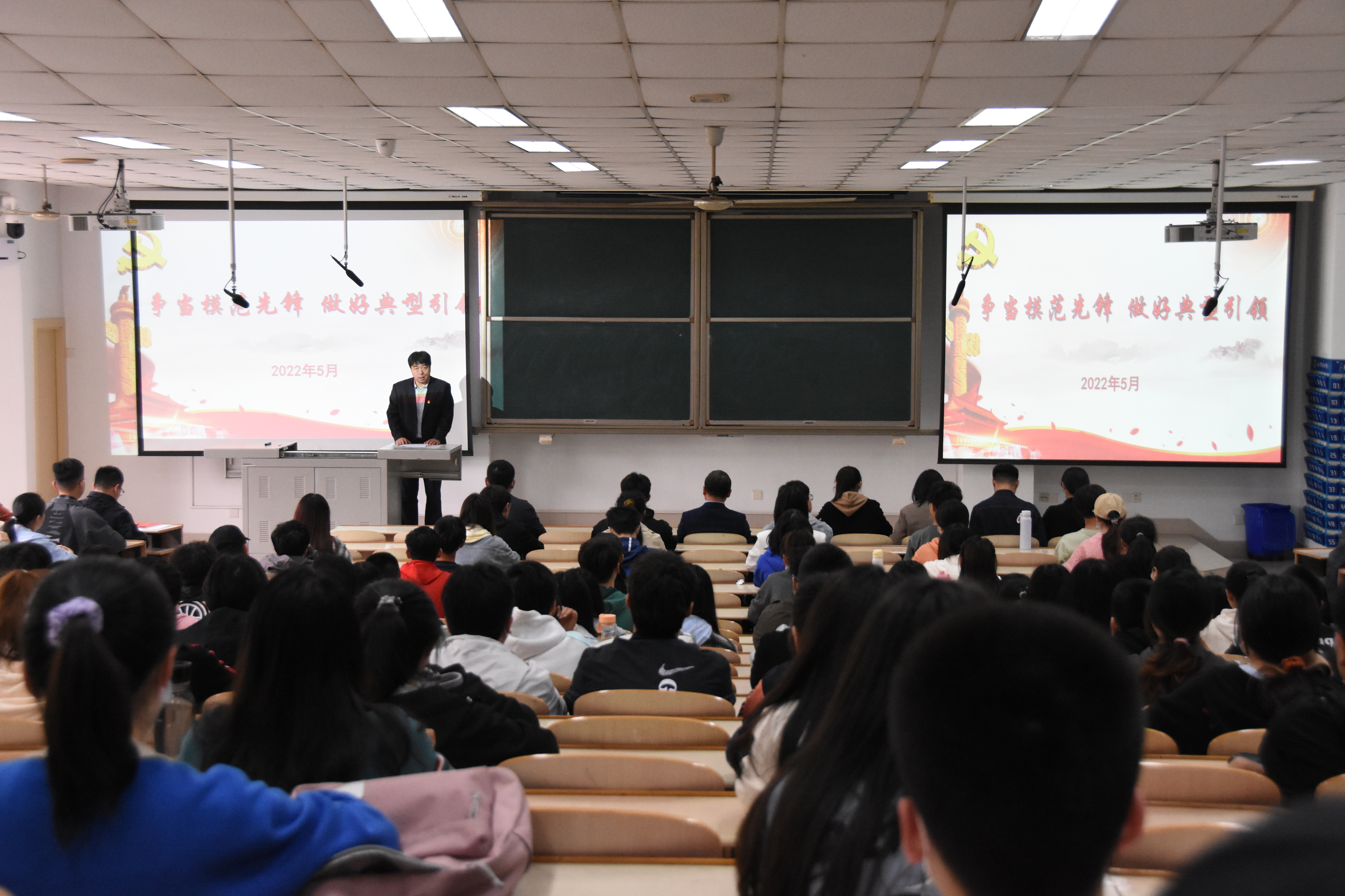 李广松以“弘扬建党精神,做合格共产党员”为主题为全体党员讲党课。他从“丰功伟绩 恢宏史诗”、“精神血脉 代代相传”和“寄予青年 伟大号召”三个方面展开论述,带领全体党员重温百年党史、感悟奋斗初心、汲取前进力量。李广松要求全体学生党员“强信念、明是非、严律己、敢担当”,新思想新理论增强政治自觉、用党的理想信念坚定历史自信、用社会主义核心价值观厚植人民情怀,在实现中华民族伟大复兴的新征程中树立、淬炼和筑牢理想信念,争做有志气、有骨气、有底气的新时代青年。
