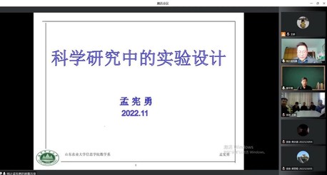 孟宪勇副教授多年从事应用统计、统计评价、机器学习和人工智能方向的科研与教学活动,孟教授以“科学研究中的实验设计”为题展开报告,分别对科学研究和实验设计进行阐述,详细介绍了科学研究常用的研究方法,研究的基本过程以及实验设计的基本概念要素、实验策略、原则和设计方法、实验写作和描述结构等。