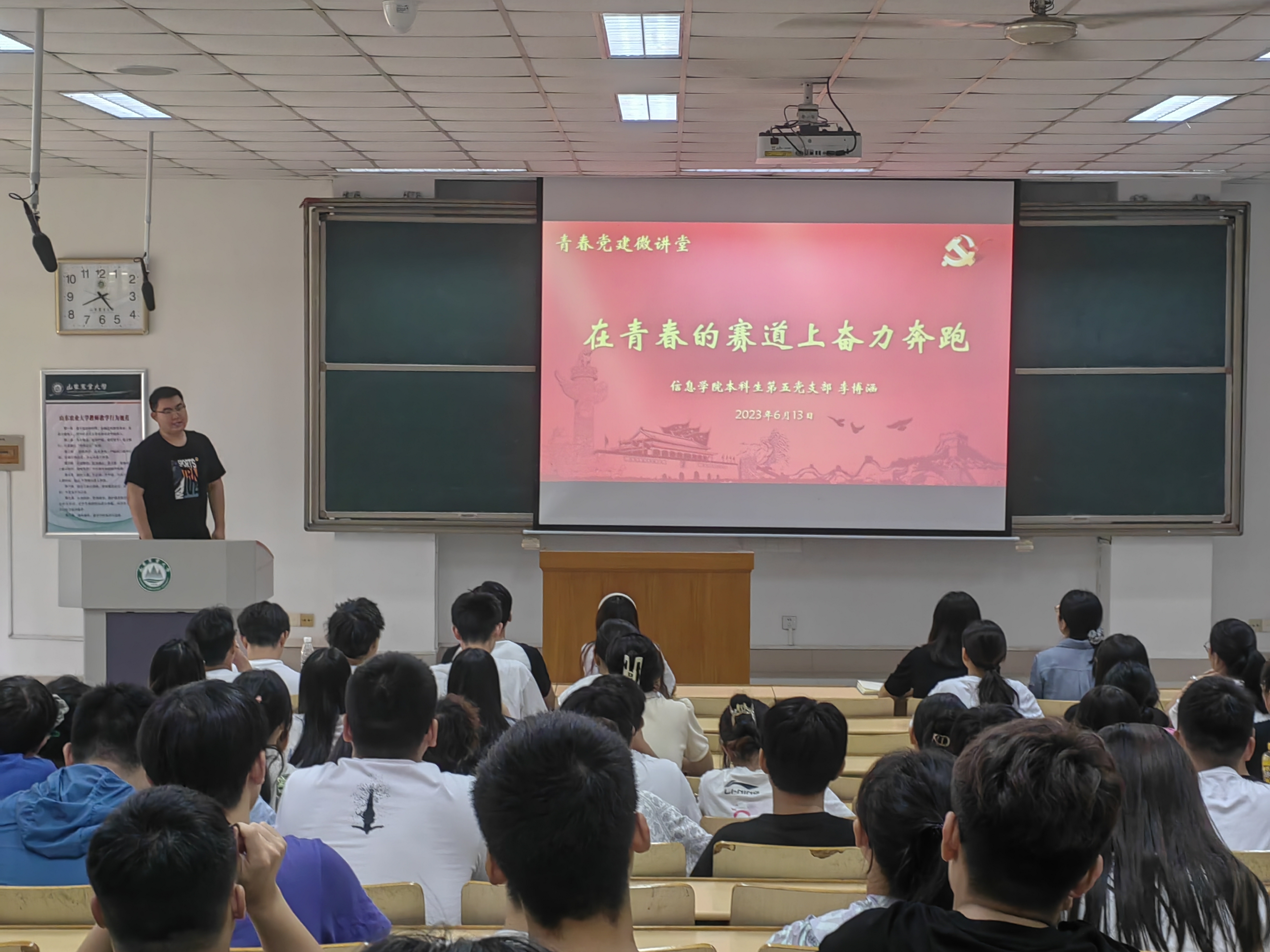 为深入开展学习贯彻习近平新时代中国特色社会主义思想主题教育,6月13日下午,信息学院于泮河校区综合楼N102举办“青春党建微讲堂”主题党日活动,全体学生党员参加活动。